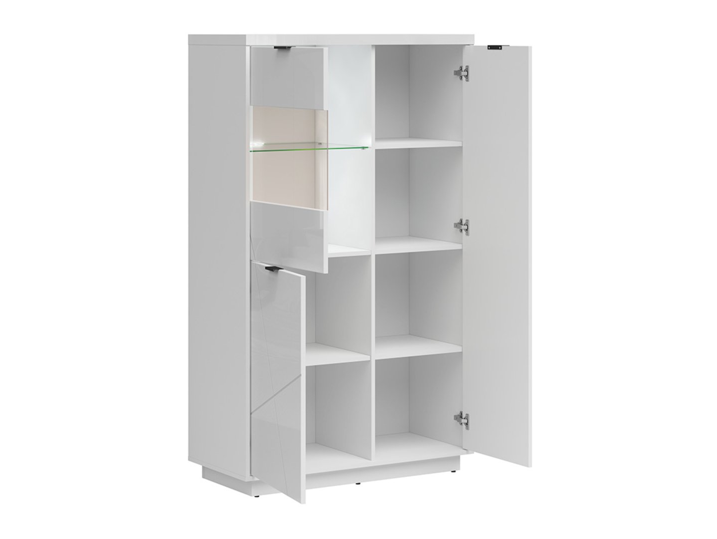 Žema dviejų durų vitrina su stiklu FORN 94 cm, balta blizgi spalva