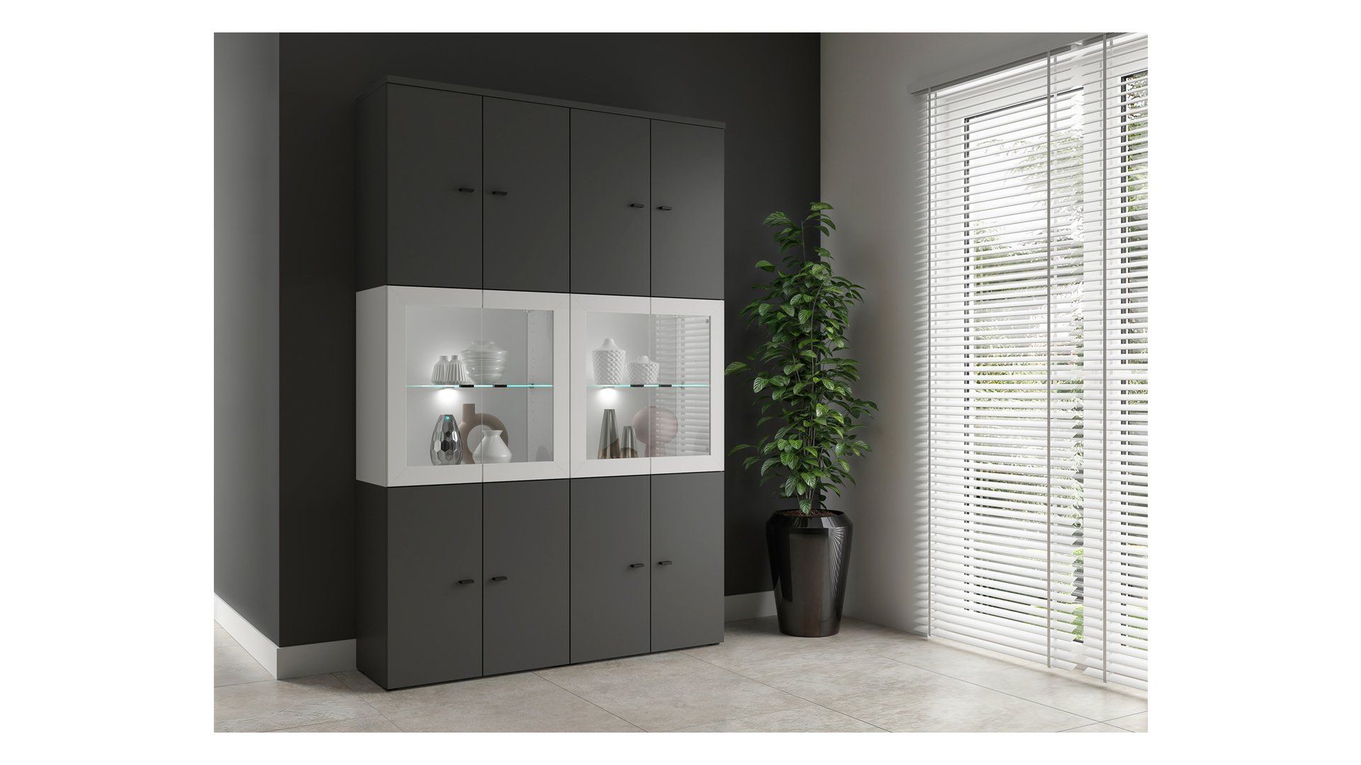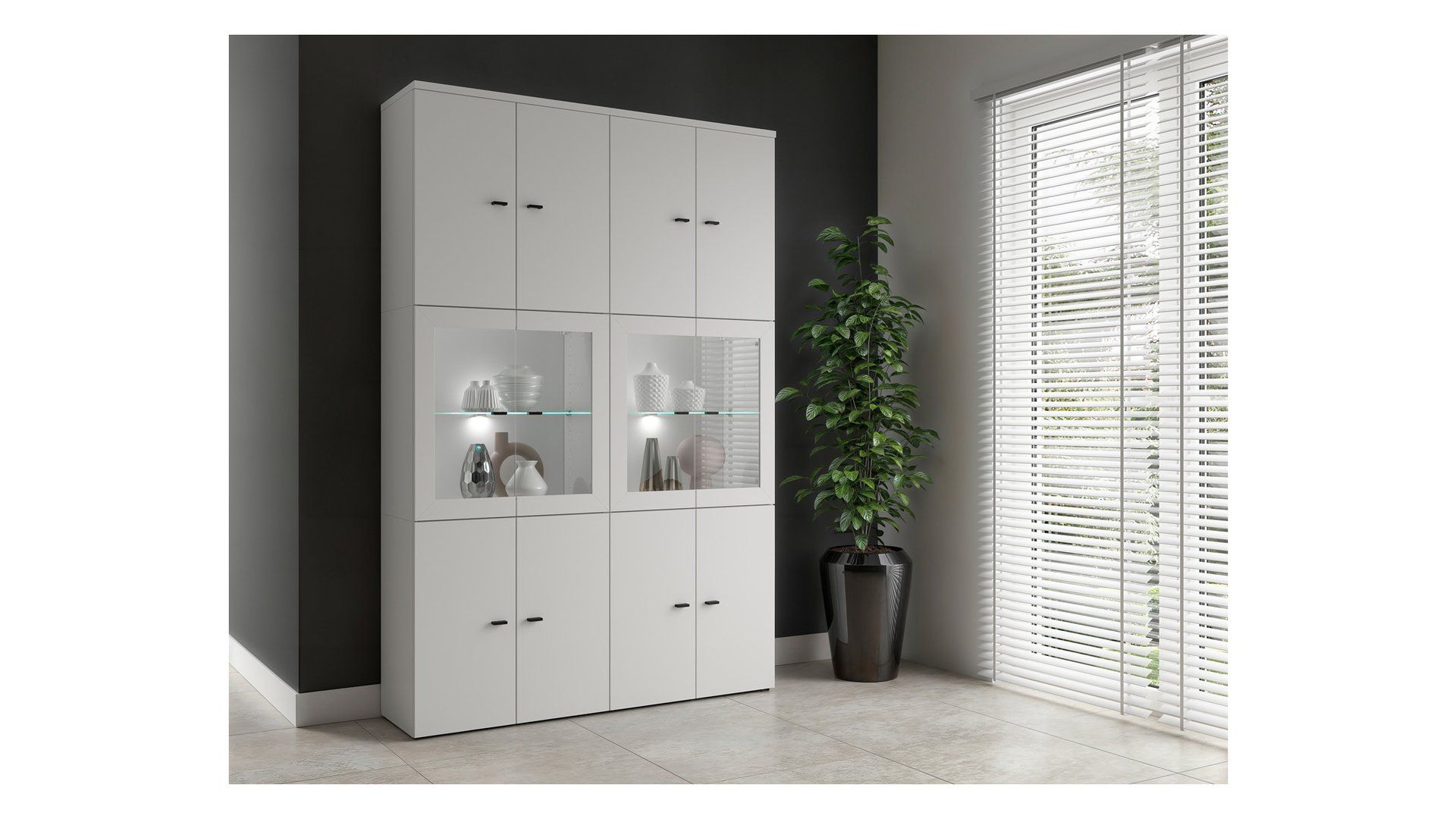 „System 64“ dviejų durų vitrina – modulinis interjeras pagal jūsų stilių. „System 64“ kolekcija – tai modernus modulinių baldų komplektas, kurio plotis – 64 cm, o aukštis – 32 arba 64 cm. Visų elementų gylis yra 35 cm, todėl galite kurti darnias ir funkcionalias kompozicijas, tokias kaip komodos, vitrinos, televizoriaus staliukai ir knygų lentynos. Modulius galima sudėti atskirai, kabinti ant sienos arba sudėti vieną ant kito, o galimos spalvos – balta, ąžuolo spalvos ir grafito – suteikia platų išdėstymo galimybių spektrą. „System 64“ taip pat leidžia vitrinose įmontuoti LED apšvietimą, kuris subtiliai išryškina ekspoziciją, o 64, 128 ir 192 cm ilgio stalviršiai leidžia sukurti elegantiškus ir funkcionalius komplektus. Funkcionalumas ir konfigūracija: „System 64“ dviejų durų vitrina derina modernų dizainą ir funkcionalumą. 64 x 64 x 35 cm matmenys ir maksimali 12 kg apkrova puikiai tiks įvairiuose kambariuose – nuo svetainės ir valgomojo iki biuro ar miegamojo. Stikliniai fasadai leidžia estetiškai eksponuoti porcelianą, stiklo dirbinius, knygas ar suvenyrus, kartu apsaugodami juos nuo dulkių. Viduje stiklinė lentyna suteikia lengvumo ir elegancijos. Patvari medžio drožlių plokštės konstrukcija atlaiko kasdienį dėvėjimąsi, o subtilios rankenos pabrėžia modernų baldų charakterį. Papildomas LED apšvietimas (už papildomą mokestį) išryškina eksponuojamus daiktus ir sukuria malonią atmosferą. Ši vitrina puikiai atrodo kaip atskiras baldas arba kaip didesnės „System 64“ sistemos dalis. Specialios savybės: Matmenys: 64 x 64 x 35 cm, Dvejos stiklinės durys elegantiškam vidaus eksponavimui, Stiklinė lentyna suteikia papildomo lengvumo, Maksimali apkrova: 12 kg, Papildomas LED apšvietimas ekspozicijai paryškinti, Patvari baldų lenta, atspari kasdieniam naudojimui, Subtilios, modernios rankenos, Galimos spalvos: Balta, „Evoke Oak“, Grafito, Galima įsigyti laisvai pastatomą arba montuojamą prie sienos konfigūraciją, Pridedami sieniniai tvirtinimo elementai, Spalva: Balta. Santrauka: Dviejų durų „System 64“ vitrina yra stilingas baldas, kuriame derinamas daiktų laikymas ir elegantiškas mėgstamų daiktų pateikimas. Puikiai tinka moderniam interjerui, leidžia sukurti lengvumo ir klasės kupiną dizainą.