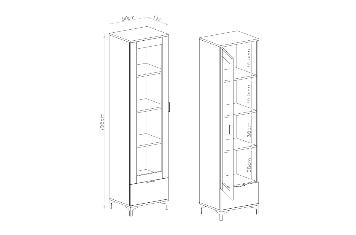 LANA W-50 smėlio spalvos (šampano) vitrina – 1 durų spintelė su stalčiumi
