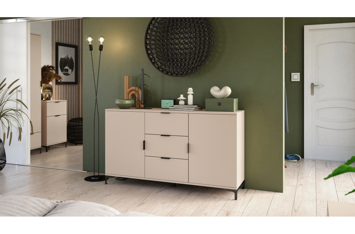 Baldas pagamintas iš 18 mm storio matinės medžio drožlių plokštės, laminuotos iš abiejų pusių, apdailintos 1 mm ABS briaunomis. Kojelės ir rankenos pagamintos iš juodo milteliniu būdu dažyto plieno.