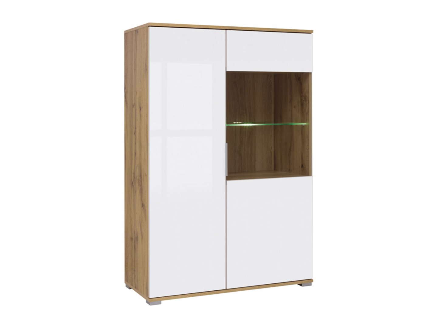 „Zele“ vitrina – elegantiška vitrina su plačiomis galimybėmis. Jei ieškote elegantiško ir funkcionalaus interjero papildymo, „Zele“ vitrina yra puikus pasirinkimas. „Zele“ kolekcija išsiskiria moderniu dizainu ir minimalistinėmis formomis, ir „Zele“ vitrina nėra išimtis, siūlanti platų išdėstymo ir funkcionalumo variantų pasirinkimą. „Zele“ vitrina yra puikus sprendimas valgomajam ir svetainei. Už tvirtų durelių rasite daug vietos įvairiems daiktams laikyti – nuo indų iki dekoracijų ir knygų. Stiklinė vitrina yra puiki vieta eksponuoti mėgstamas kolekcijas ar norimus eksponuoti papuošalus. Jūsų šeimos saugumas yra mūsų prioritetas, todėl „Zele“ vitrinoje naudojome patvarų grūdintą stiklą. Tai garantuoja, kad jūsų artimieji bus saugūs net ir pažeidimo atveju. „Zele“ vitrinos spalvų pasirinkimas siūlo platų pasirinkimą. Galite derinti „Wotan Oak“ korpusą su blizgiais baltais fasadais, suteikdami savo interjerui modernų ir elegantišką charakterį. Jei pageidaujate santūresnių spalvų, visiškai „Wotan Oak“ apdaila tikrai atitiks jūsų lūkesčius. Minimalistinė rankena, integruota į fasado kraštą, pabrėžia „Zele“ vitrinos charakterį, suteikdama jai elegantišką ir modernų vaizdą. Lengvą prieigą prie turinio užtikrina stiklinėje priekinėje dalyje integruotas atidarymo spustelėjus mechanizmas. Jei norite suteikti modernumo, „Zele“ vitriną galima aprūpinti energiją taupančiu apšvietimu, kurį galima įsigyti už papildomą mokestį. Tai puikus būdas išryškinti eksponuojamus daiktus ir sukurti jaukią atmosferą. „Zele“ vitriną galite derinti su lentyna ir kitais „Zele“ kolekcijos elementais, taip sukurdami darnią ir ergonomišką erdvę savo svetainėje. Šis baldas ne tik žavi savo dizainu, bet ir siūlo praktiškus daiktų laikymo bei eksponavimo sprendimus. Išbandykite ir pamatysite, kiek jis gali papildyti jūsų interjerą.