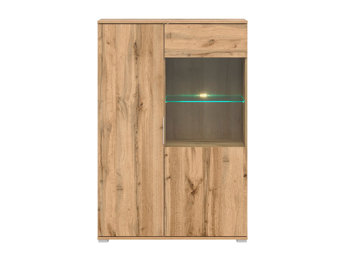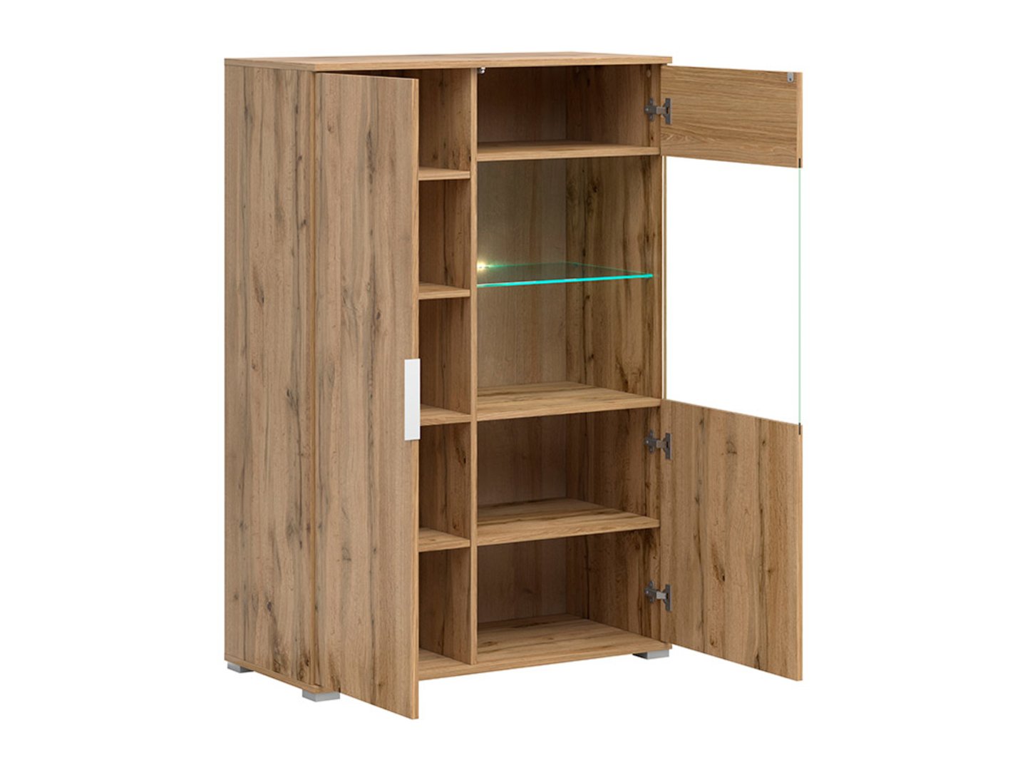 „Zele“ vitrina – elegantiška vitrina su plačiomis galimybėmis. Jei ieškote elegantiško ir funkcionalaus interjero papildymo, „Zele“ vitrina yra puikus pasirinkimas. „Zele“ kolekcija išsiskiria moderniu dizainu ir minimalistinėmis formomis, ir „Zele“ vitrina nėra išimtis, siūlanti platų išdėstymo ir funkcionalumo variantų pasirinkimą. „Zele“ vitrina yra puikus sprendimas valgomajam ir svetainei. Už tvirtų durelių rasite daug vietos įvairiems daiktams laikyti – nuo indų iki dekoracijų ir knygų. Stiklinė vitrina yra puiki vieta eksponuoti mėgstamas kolekcijas ar norimus eksponuoti papuošalus. Jūsų šeimos saugumas yra mūsų prioritetas, todėl „Zele“ vitrinoje naudojome patvarų grūdintą stiklą. Tai garantuoja, kad jūsų artimieji bus saugūs net ir pažeidimo atveju. „Zele“ vitrinos spalvų pasirinkimas siūlo platų pasirinkimą. Galite derinti „Wotan Oak“ korpusą su blizgiais baltais fasadais, suteikdami savo interjerui modernų ir elegantišką charakterį. Jei pageidaujate santūresnių spalvų, visiškai „Wotan Oak“ apdaila tikrai atitiks jūsų lūkesčius. Minimalistinė rankena, integruota į fasado kraštą, pabrėžia „Zele“ vitrinos charakterį, suteikdama jai elegantišką ir modernų vaizdą. Lengvą prieigą prie turinio užtikrina stiklinėje priekinėje dalyje integruotas atidarymo spustelėjus mechanizmas. Jei norite suteikti modernumo, „Zele“ vitriną galima aprūpinti energiją taupančiu apšvietimu, kurį galima įsigyti už papildomą mokestį. Tai puikus būdas išryškinti eksponuojamus daiktus ir sukurti jaukią atmosferą. „Zele“ vitriną galite derinti su lentyna ir kitais „Zele“ kolekcijos elementais, taip sukurdami darnią ir ergonomišką erdvę savo svetainėje. Šis baldas ne tik žavi savo dizainu, bet ir siūlo praktiškus daiktų laikymo bei eksponavimo sprendimus. Išbandykite ir pamatysite, kiek jis gali papildyti jūsų interjerą.