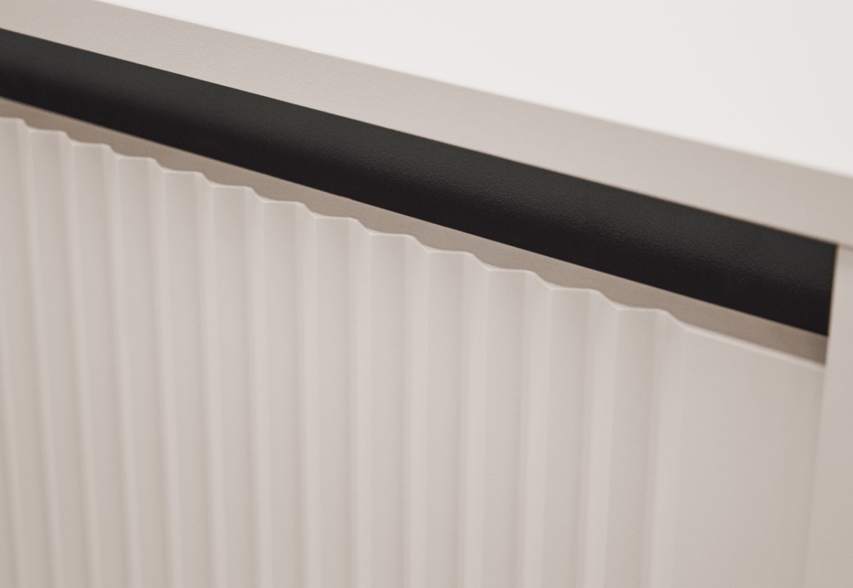 Priekinės dalys pagamintos iš 16 mm smėlio spalvos MDF plokštės / 16 mm juodos laminuotos plokštės