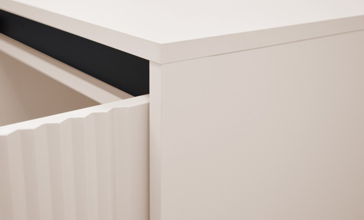 Korpusai pagaminti iš 16 mm smėlio spalvos laminuotos plokštės su ABS apvadais