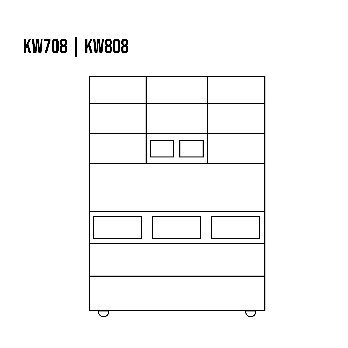 Vaškuota KW708 SLIM vitrina/indauja, sukurta kaimišku stiliumi, pagaminta vien iš pušies masyvo. Ją sudaro du pagrindiniai elementai: komoda ir viršutinis blokas. Trijų durų komodos viduje yra lentyna, einanti per visą spintelės ilgį. Po viršutiniu bloku yra trys stalčiai, kurie išstumdomi medinėmis bėgelėmis. Viršutinį bloką sudaro dvejos viengubos išorinės durys su stiklu (kiekvienose yra po dvi lentynas viduje). Tarp durų yra viena lentyna ir du maži stalčiai. Viršutinis blokas apdailintas paprastu karūniniu lipdiniu, o apatinis – banguota juostele. Šis baldas pasižymi patvaria ir tvirta konstrukcija. Jo gamyboje naudojamos rankų darbo metalinės rankenos ir vyriai su sendinto stiliaus efektu. Vitrina/indauja nebūtinai turi būti siejama tik su virtuve. Ji gali būti įkomponuota į bet kurį kambarį. Svetainėje ji gali tarnauti kaip baras, valgomajame – stalo įrankiai ir indai, o miegamajame – patalynė ir rankšluosčiai. KW708 vitrina/indauja suteiks unikalią atmosferą bet kokiam interjerui, kupiną šilumos ir šeimyniškos atmosferos. Jo funkcionalumas labai palengvins saugojimą.