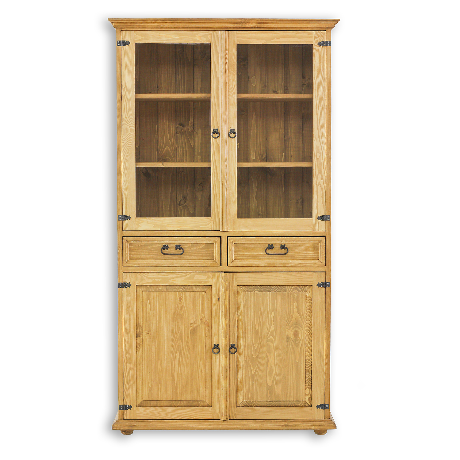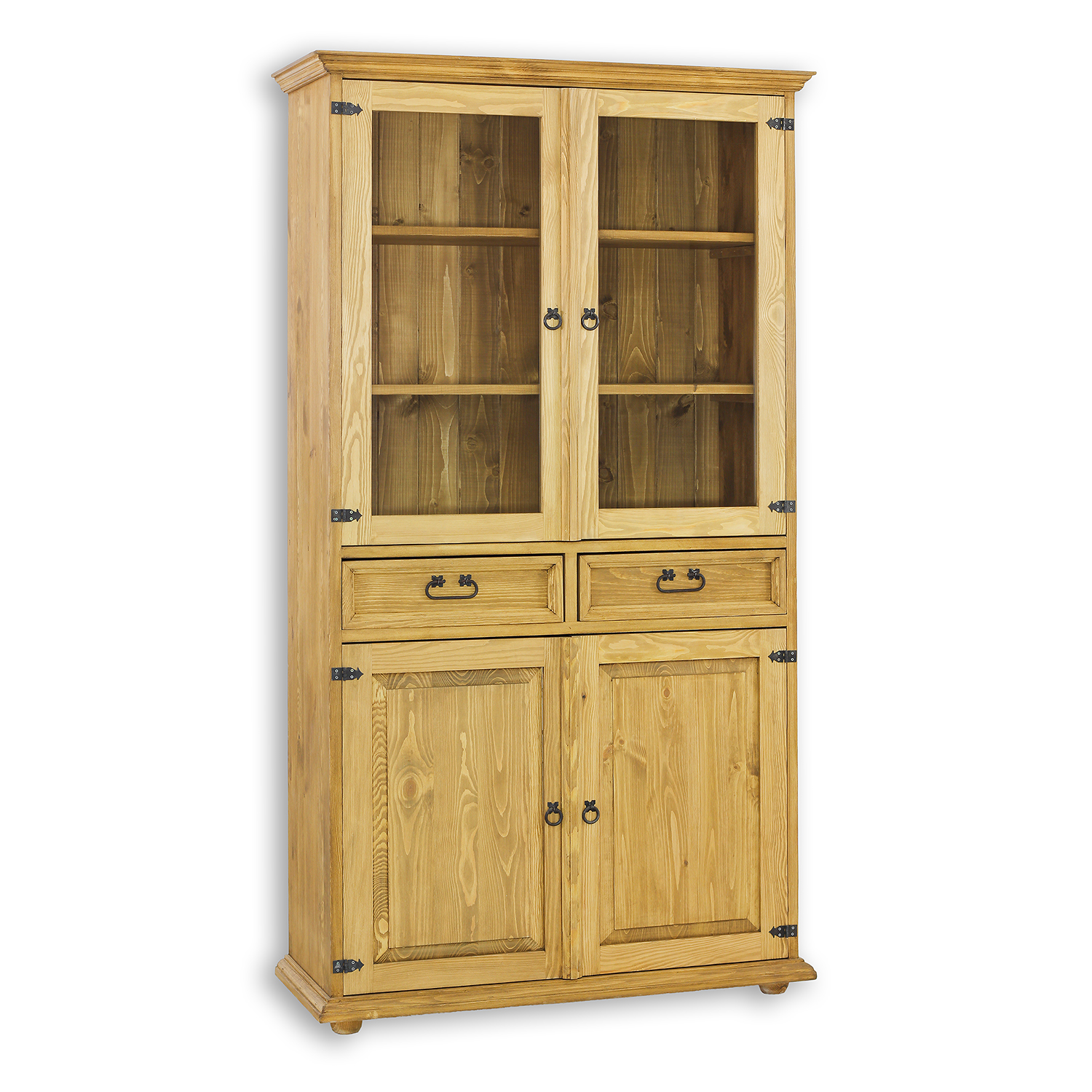 Dvigubai vaškuota vitrina KW718, sukurta kaimišku stiliumi, pagaminta iš tvirtos pušies medienos. Už stiklinių dvigubų durų yra trys lentynos, puikiai tinkančios laikyti pietų servizus, papuošalus, suvenyrus ar knygas. Centrinėje spintelės dalyje yra du stalčiai ant medinių bėgelių. Apatinėje dalyje, už dvigubų durų, yra viena lentyna. Šis baldas pasižymi patvaria ir tvirta konstrukcija. Jo konstrukcijoje panaudotos rankų darbo metalinės rankenos ir vyriai su sendinto rašto efektu. KW718 vitrina bet kokiam interjerui suteiks unikalios atmosferos, kupinos šilumos ir šeimyniškos atmosferos. Jos funkcionalumas labai palengvins daiktų laikymą.