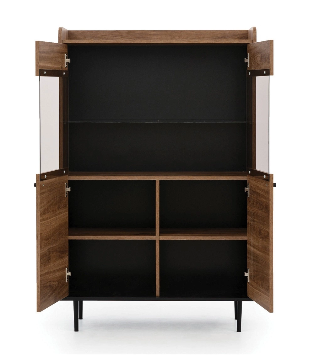 „Apallo“ vitrina – tai žavus baldas, pasižymintis unikaliu ir išskirtiniu charakteriu. Intriguojanti, tamsiai ruda fasadų spalva puikiai dera su juodais aksesuarais, suteikdama baldui lofto ir industrinio stiliaus. Aukšti kraštai pabrėžia unikalų vitrinos charakterį ir apsaugo daiktus nuo atsitiktinio kritimo. Stikliniai fasadai leidžia pademonstruoti svetainės dekoracijas. Unikalus vitrinos dizainas puikiai tiks net ir reikliausiame interjere.