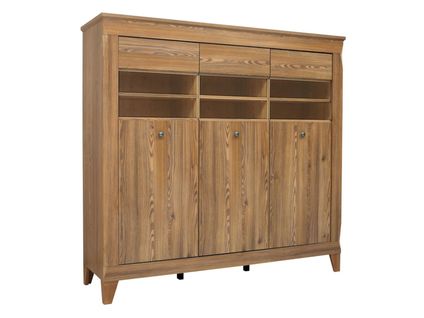Bergen vitrina – jūsų kelias į subtilią ekspoziciją. Šiomis dienomis interjero dizainas tapo tikru standartu, išreiškiančiu jūsų stilių ir charakterį. Todėl rinkdamiesi baldus savo namams norime, kad jie būtų ne tik praktiški, bet ir estetiški bei originalūs. Bergen kolekcija yra puikus šio požiūrio pavyzdys, derinant geometrines formas, rafinuotas detales ir prislopintas spalvas, sukuriant baldus, kurie džiugins tiek svetaines, tiek miegamuosius. Bergen kolekcijos centrinis elementas – trijų durų vitrina, kurioje dera funkcionalumas ir grožis. Skirta įvairiems daiktams laikyti, ši spintelė turi visą priekinę dalį, kurioje galite paslėpti įvairius daiktus, išlaikant tvarką. Grūdinto stiklo dalis leidžia eksponuoti mėgstamas knygas, dekoracijas ar kolekcionuojamus daiktus. Be to, ant plataus viršutinio stalviršio galite komponuoti gėles ir pridėti stilingų aksesuarų, kad sukurtumėte įspūdingą kompoziciją. Vienas iš išskirtinių Bergen vitrinos bruožų – paprasta forma, papuošta išskirtiniu “įdubimu” šoniniuose kraštuose. Subtilios detalės, tokios kaip išsikišęs, tiesus cokolis ir nušlifuoti priekiniai kraštai, suteikia baldams elegancijos ir unikalaus charakterio. Spalva yra pagrindinis Bergen kolekcijos elementas. Šilta, auksinė Sibiu maumedžio medienos spalva sukuria unikalią atmosferą bet kuriame kambaryje. Tai puikus pagrindas kurti stilingus išdėstymus, atspindinčius jūsų asmeninį skonį ir stilių. Siekiant pabrėžti Bergen vitrinos grožį ir sukurti unikalią atmosferą jūsų interjere, po lentynomis įmontuotas energiją taupantis LED apšvietimas. Tai puikus sprendimas, kuris pritrauks dėmesį ir suteiks interjerui unikalaus žavesio, ypač vakarais. Detalės taip pat svarbios. Aukštos, nuožulnios kojelės ir metalinės rankenos suteikia šiai įspūdingai vitrinai charakterio. Būtent šie elementai suteikia baldams unikalų charakterį ir paverčia juos bet kurio kambario traukos centru. Renkantis baldus svarbi ne tik estetika, bet ir funkcionalumas. „Bergen“ kolekcijoje siūlomi firminiai aksesuarai su švelnaus uždarymo sistema, todėl juos nepaprastai patogu naudoti kiekvieną dieną. Bėgeliai turi specialius stabdžius, kurie sulėtina baldų fasadus jiems užsidarant, beveik tyliai prisijungdami prie rėmo. Tai puikus sprendimas tiems, kurie vertina ramybę ir komfortą. Be to, „Bergen“ kolekcija siūlo įvairių formų, kurias galima laisvai derinti, sukuriant funkcionalų išdėstymą, pritaikytą jūsų šeimos poreikiams. Tai reiškia, kad „Bergen“ baldus galite pritaikyti pagal savo skonį ir erdvę, todėl jie idealiai tinka daugeliui interjero tipų. Trumpai tariant, „Bergen“ kolekcija yra puikus sprendimas tiems, kurie ieško baldų, kuriuose derėtų funkcionalumas, estetika ir aukštos kokybės meistriškumas. „Bergen“ vitrina yra šios kolekcijos centrinis elementas, žavintis paprasta forma, šilta medžio spalva, subtiliomis detalėmis ir praktiškais sprendimais. Šis baldas suteiks jūsų interjerui unikalaus charakterio ir leis jums sukurti išdėstymą, kuris atspindėtų jūsų asmeninį stilių.