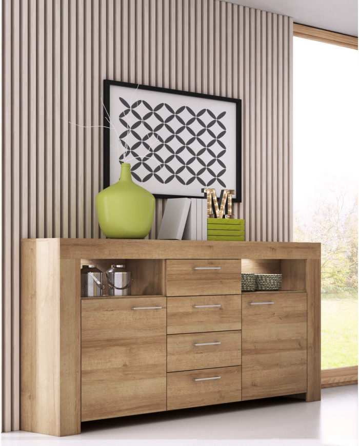 Aukšta vitrina „Sky SWT70 Riviera Oak“ priklauso to paties pavadinimo baldų linijai, pasižyminčiai tvirta konstrukcija ir moderniu stiliumi. Ji turi varstomas duris su grūdintu apsauginiu stiklu stiklintoje dalyje. Spintelė pagaminta iš laminuotos plokštės, kuri yra labai atspari įbrėžimams ir lengvai valoma. Komplektas tiekiamas išardytas ir pateikiamas su aiškiomis instrukcijomis. Jį taip pat galima įsigyti su „Country Gray“ apdaila. Papildomą apšvietimą galima įsigyti „Product Creator“ programėlėje.