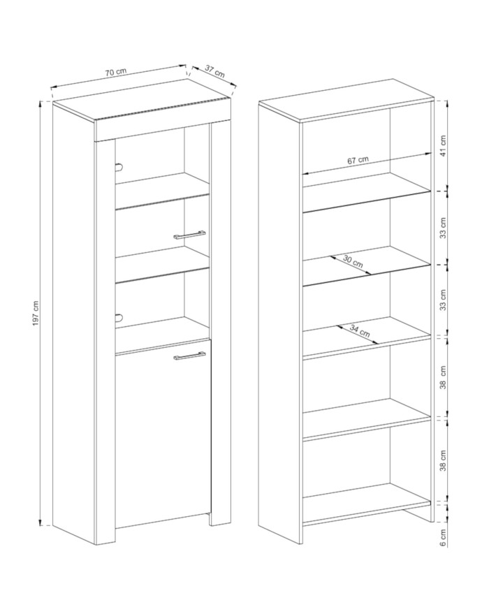Aukšta vitrina „Sky SWT70“, vienvėrės durys, „Riviera Oak“