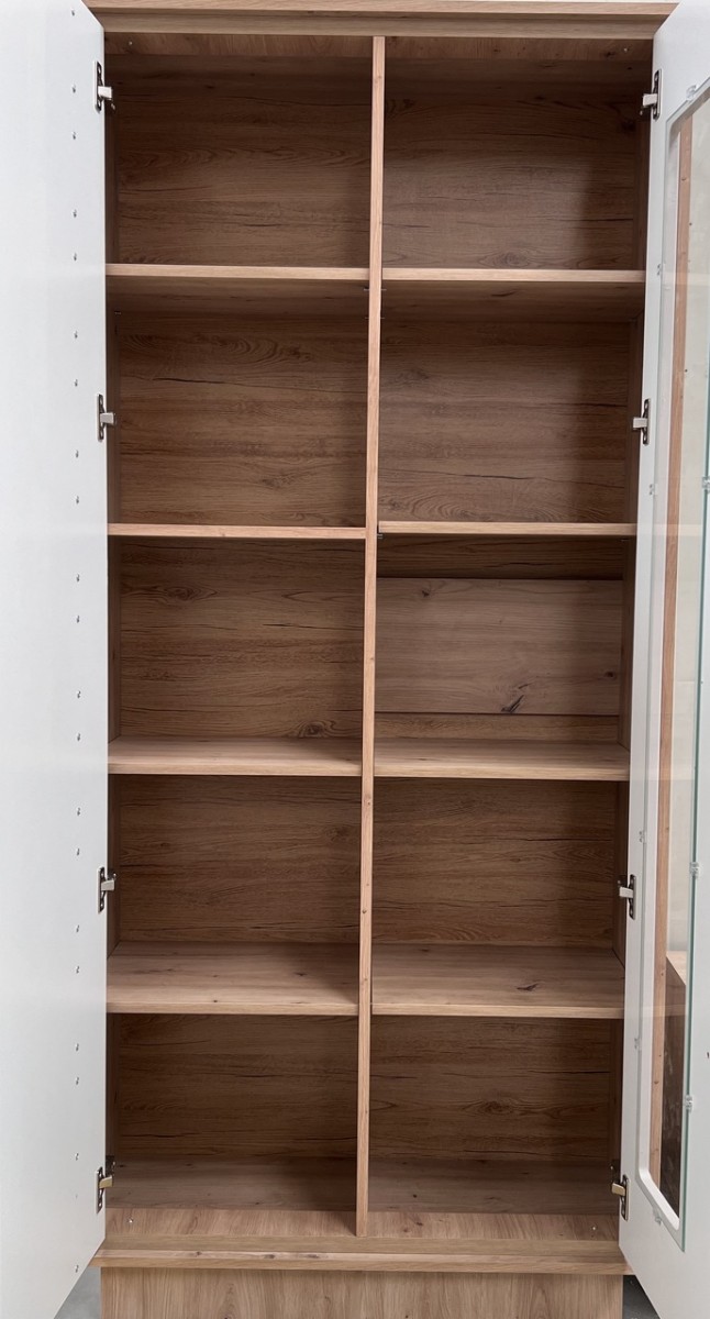 „Keks K2“ kašmyro vitrina su apšvietimu – už fasadų yra lentynos.