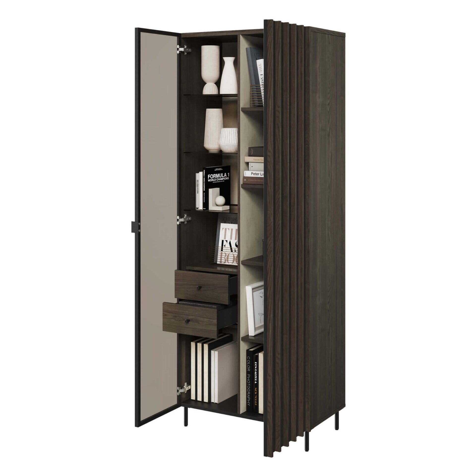 Vitrina su apšvietimu PIEMONTE 02 Portland Ash/Black