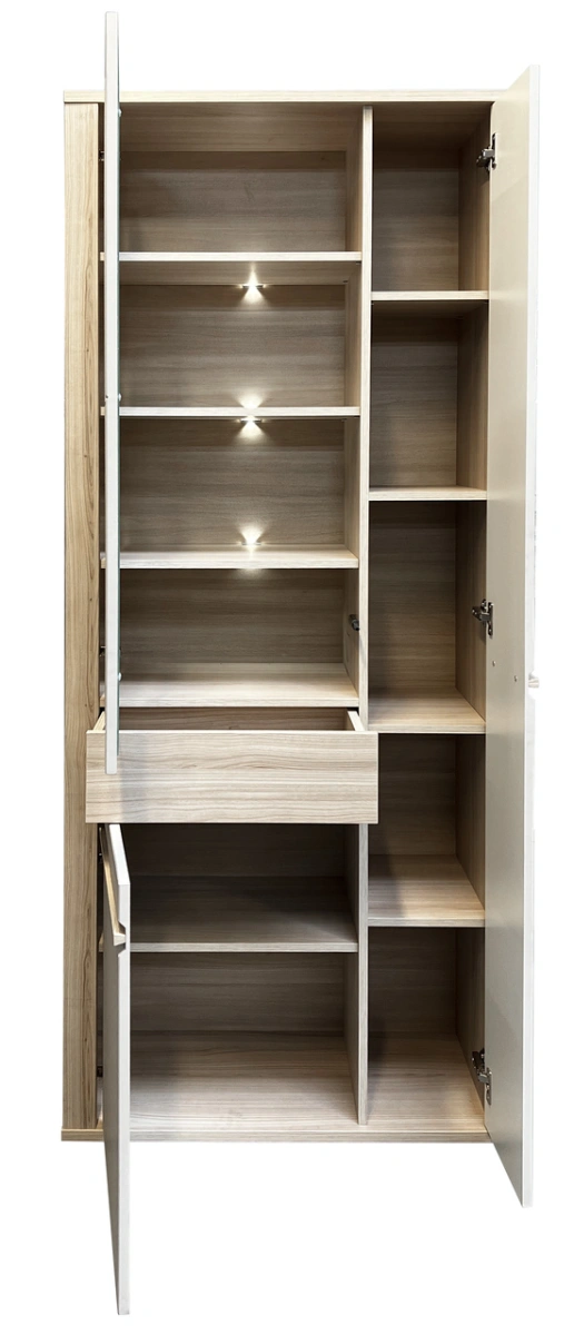 Oslo OS2 vitrina – turi daug lentynų ir stalčių.