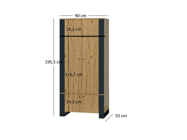 Ši 4 durų spinta turi lentyną ir pakabą daiktams. WOOD spintoje apatinėje dalyje yra vietos daiktams susidėti, o viršutinėje dalyje yra lentyna ir pakaba daiktams. Šis baldas puikiai tinka drabužiams laikyti miegamajame, jaunimo kambaryje, rūbinėje ar koridoriuje. Be drabužių, WOOD keturių durų spintoje taip pat galima laikyti batus, aksesuarus ir patalynę.