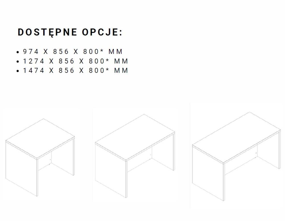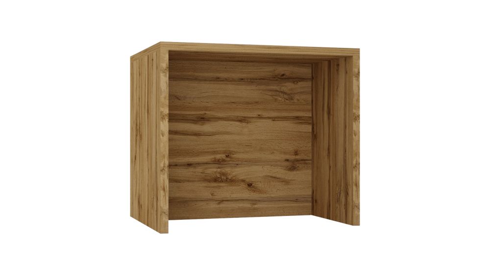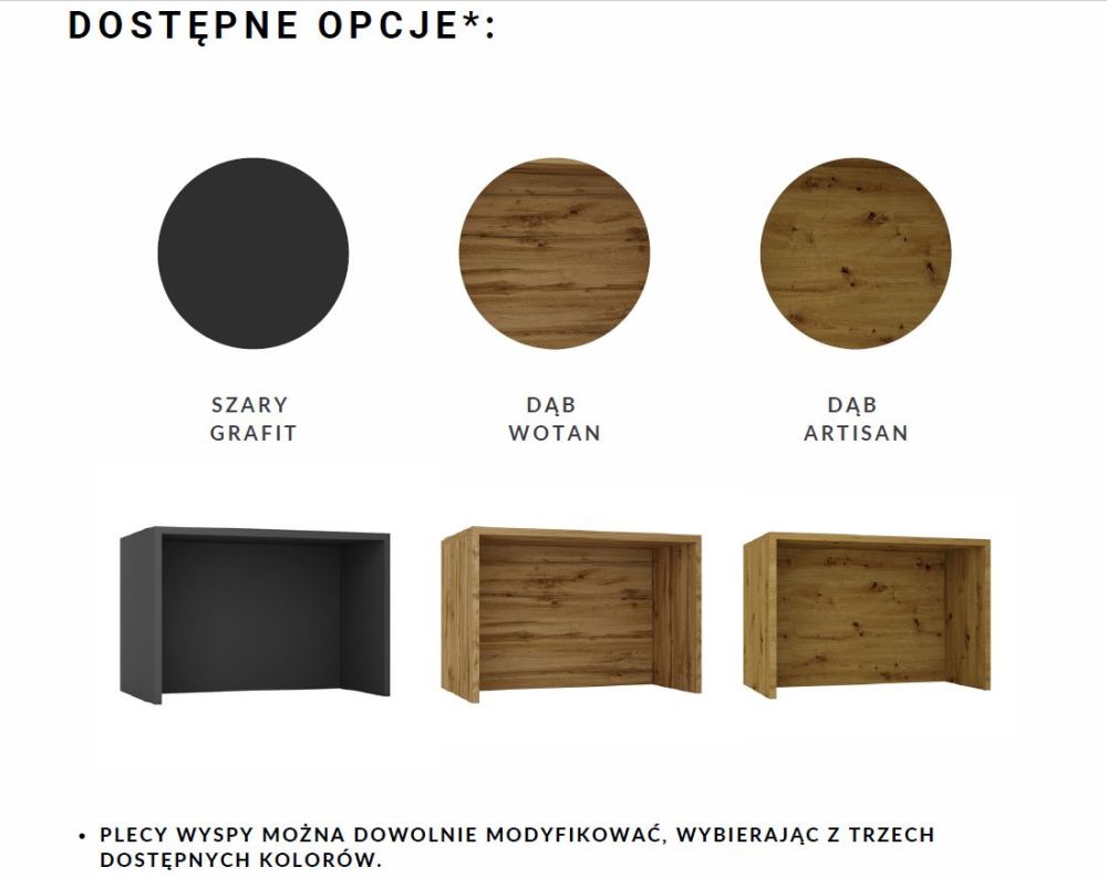 Viršutinis stalviršis, 36 mm storio, 1 komplektas šoninių lentelių (2 vnt. po 36 mm), 16 mm storio galinė sienelė – be spintelių.