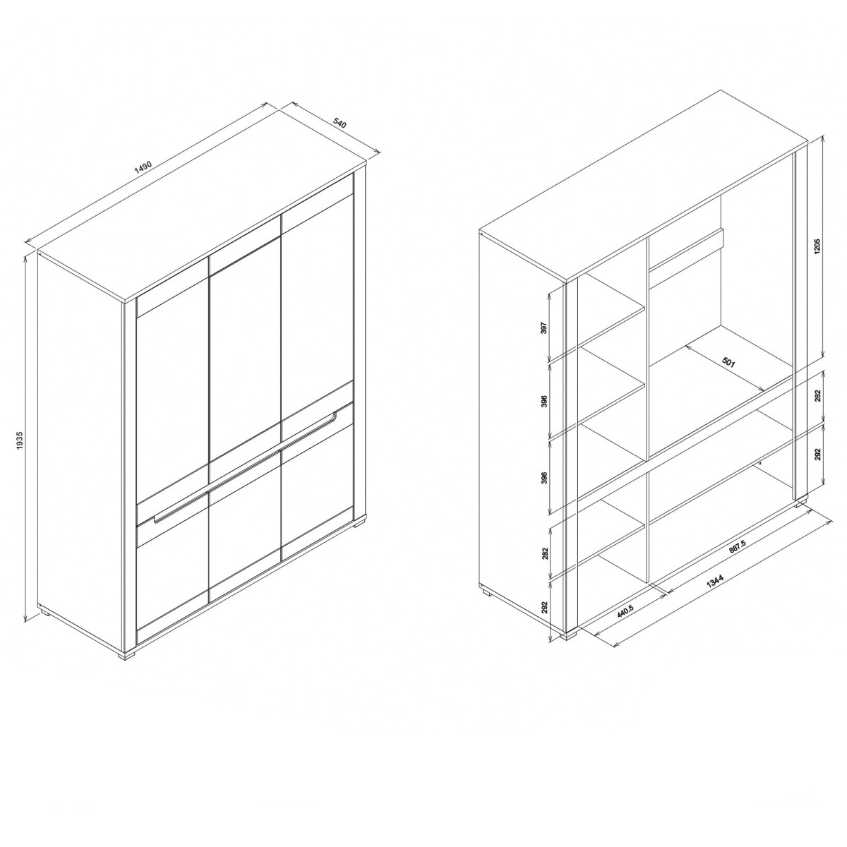 Plotis 149 cm Gylis 54 cm Aukštis 193,5 cm Produkto svoris su pakuote 124,95 kg Gamintojo kodas / simbolis Y08 Kolekcijos pavadinimas YORK Pavadinimas b2b sistemoje YORK Y-8 grandson ąžuolas/grafitas 3D SPINTELĖS komplektas Produkto pakuočių skaičius 5 Stilius Modernus Įranga Surinkimo instrukcijos / surinkimo priedai Surinkimas Savarankiškam surinkimui Korpuso spalva Grandson ąžuolas / Grafitas Korpuso medžiaga / tipas / storis 16 mm baldų plokštė / 16 mm MDF baldų plokštė / juostelė 18 mm MDF baldų plokštė Viršutinio korpuso medžiaga / tipas / storis 22 mm baldų plokštė Apatinio korpuso medžiaga / tipas / storis 22 mm baldų plokštė Lentynos spalva Grandson ąžuolas Lentynos medžiaga / tipas / storis 16 mm baldų plokštė Lentynų kiekis 3 Vainiko tipo lentynų kiekis 1 Galinės sienelės medžiaga / tipas / storis 2,5 mm HDF baldų plokštė Galinės sienelės spalva – craft ąžuolas, auksinė Priekinė spalva Grandson ąžuolas Priekinė medžiaga / tipas / storis 16 mm baldų plokštė / 18 mm MDF baldų plokštė Priekinė dalis su veidrodžiu TAIP Priekinė dalis su veidrodžiu kiekis 1 Priekinis vyris ⌀ 35 mm reguliuojamas trijose plokštumose Priekinė rankena / apdaila / spalva Frezuota / Grandson Oak Kojelė / apdaila / spalva Nereguliuojama / plastikinė / grafito Papildoma kojelė / apdaila / spalva Reguliuojama vidurinė dalis / plastikinė / juoda Durelių skaičius 6 Uždarų nišų skaičius 8 Korpuso įranga Standartinė 1 pakabos strypas
