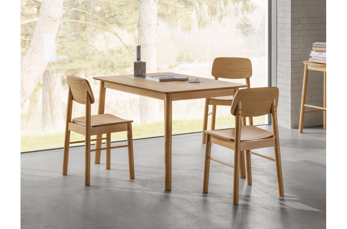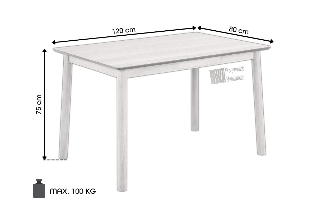 PLOTIS 120 cm, GYLIS 80 cm, AUKŠTIS 75 cm, STALVIRŠIAUS FORMA Stačiakampis, MEDŽIAGOS Ąžuolo fanera + kaučiukmedis, STILIUS Modernus / Skandinaviškas / Klasikinis, KITA Gaminys skirtas savarankiškam surinkimui su pateiktomis instrukcijomis MAKSIMALI APKROVA 100 kg