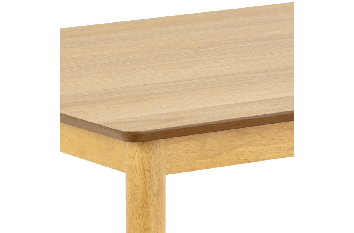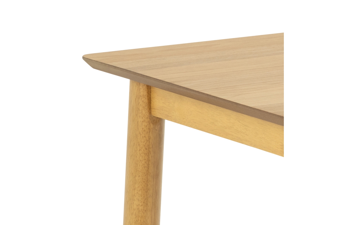 Lakuotas faneros stalviršis pasižymi subtiliu, natūraliu medienos raštu, kuris pabrėžia jos eleganciją. Kaučiukmedžio rėmas užtikrina tvirtumą ir konstrukcijos stabilumą, o paprasta forma suteikia stalui nesenstantį įvaizdį.