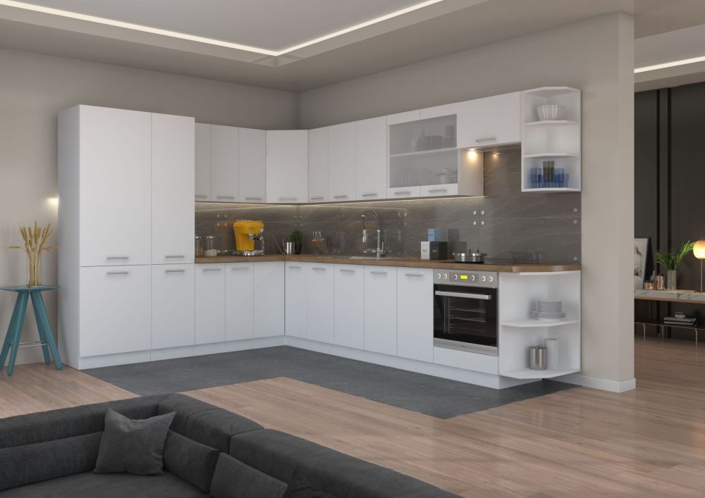 Eko baltas kampinis virtuvės komplektas 250/340 cm