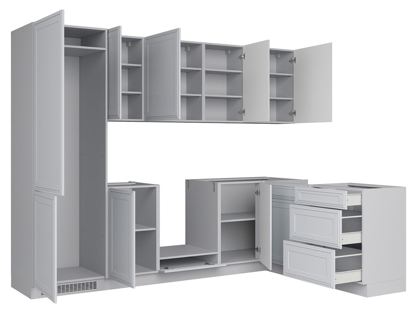 „Verdi“ kampinis virtuvės komplektas – funkcionali kampinė sofa. Įrenginėjate virtuvę ir svarstote, ar teikti pirmenybę estetikai, ar funkcionalumui? Daugiau jokių rūpesčių, „Family Line“ virtuvės baldai sujungia abu. Dėl gerai organizuotos erdvės turėsite vietos kasdieniam maisto gaminimui, o daiktų laikymas bus lengvesnis nei bet kada anksčiau. Modulinė „Family Line“ virtuvės kolekcija su „Verdi“ fasadais išsiskiria klasikine elegancija. Mūsų paruoštas virtuvės baldų komplektas sukurs jūsų L formos virtuvę. Tai modulių kompozicija, leidžianti ne tik eksponuoti, bet ir laikyti visus būtiniausius daiktus. Viršutinėse spintelėse galima laikyti prieskonius, maistą ir indus. Apatinėse spintelėse galima laikyti puodus, prietaisus ir šiukšliadėžes. Kompaktiškas 270 × 180 cm komplektas leidžia visiškai integruoti buitinius prietaisus. Jame yra šaldytuvo spintelė, orkaitės spintelė ir kriauklės spintelė. Virtuvės komplekte galima rinktis laisvai kabantį gartraukį arba atitinkamą gartraukį iš „Verdi“ kolekcijos. Baldai gali būti dešininės pusės išdėstymo. Taip pat siūlome veidrodinę versiją – kairės pusės išdėstymą. Šviesiai pilkos matinės spintelės puikiai dera moderniame interjere ir leidžia naudoti bet kokios spalvos aksesuarus. Dekoratyvinė juostelė suteikia elegancijos. Komplektą sudaro šios spintelės: G_60/72, G_45/72, G_60/72, G_45/72, DL_60/207, D_45/82, DP_60/82_K, DNW_105/82, DKS_60/82_SMB/B, D3S_60/82_2SMB/SMB, COK/250, COK/250. NAR1 ir NAR2 kampinės spintelės idealiai tinka norint dar labiau išplėsti jūsų virtuvėlę. „Family Line“ virtuvės baldai su „Verdi“ priekine dalimi suteikia galimybę įrengti virtuvę pagal savo viziją.