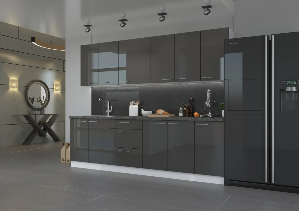 Virtuvės spalva: Blizgi pilka