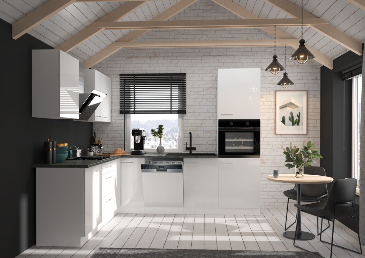 Blizgančioje virtuvėje „Lara“ yra modernus ir patrauklus spintelių komplektas – virtuvės baldai, kurie tiks prie bet kokio interjero.