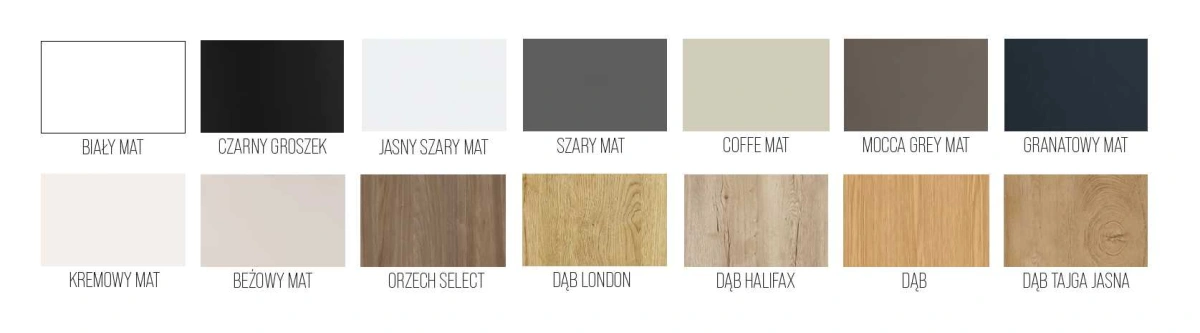 SPALVA: BALTA MATINĖ, JUODOJI ŽIRNIAI, ŠVIESIAI PILKA MATINĖ, PILKA MATINĖ, KAVOS MATINĖ, MOKA PILKA MATINĖ, TAMSIAI MĖLYNA MATINĖ, KREMINĖ MATINĖ, SMĖLIO SPALVOS MATINĖ, PASIRINKTA RIEŠUTMEDIS, LONDONO ĄŽUOLAS, HALIFAKSO ĄŽUOLAS, ĄŽUOLAS, ŠVIESUS TAIGOS ĄŽUOLAS