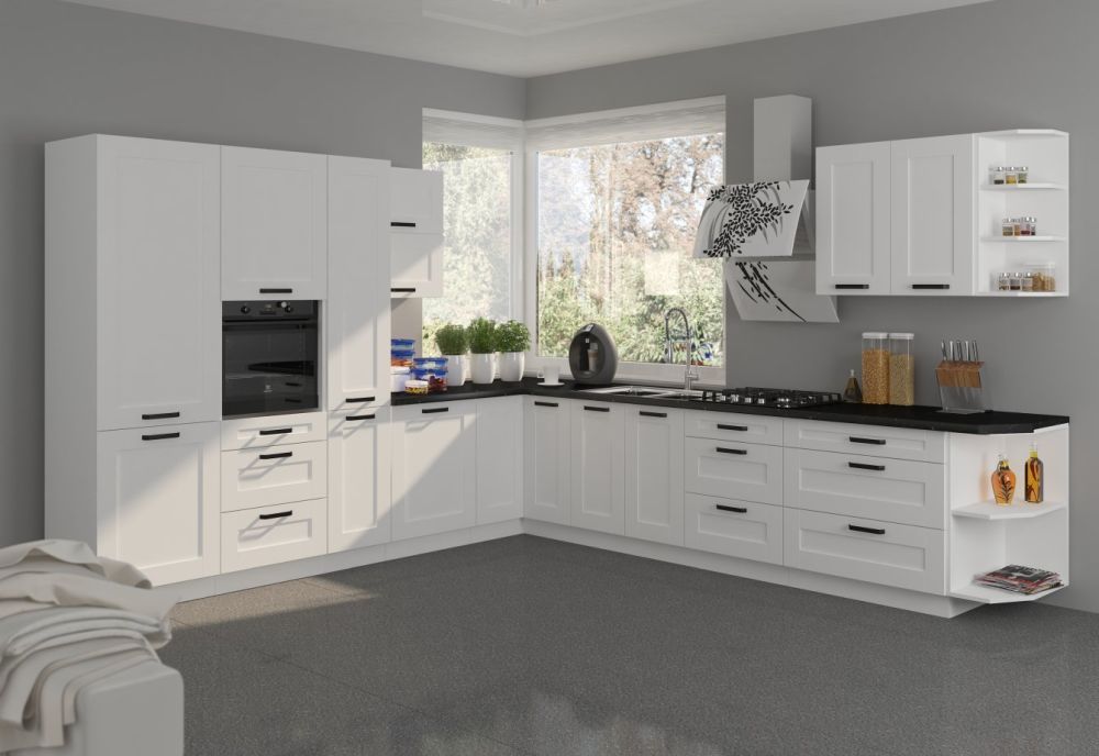 Kampinis virtuvės komplektas, kampinė virtuvė 210/350 cm, balta Luna