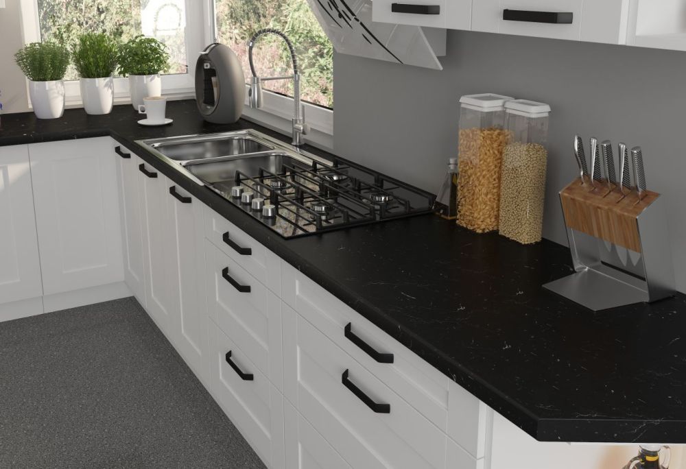 2,8 cm arba 3,8 cm storio stalviršiai, pagaminti naudojant pokalimo technologiją, su ergonomiškai užapvalinta priekine dalimi (nebūtina)