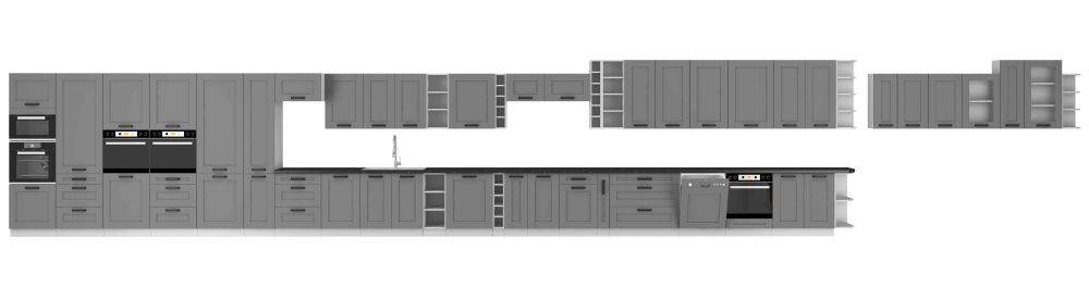 Priekinės dalys: 16 mm storio MDF plokštė, dulkių pilka su frezavimo angomis – 1 mm storio ABS briauna (“nešvari” pilka)
