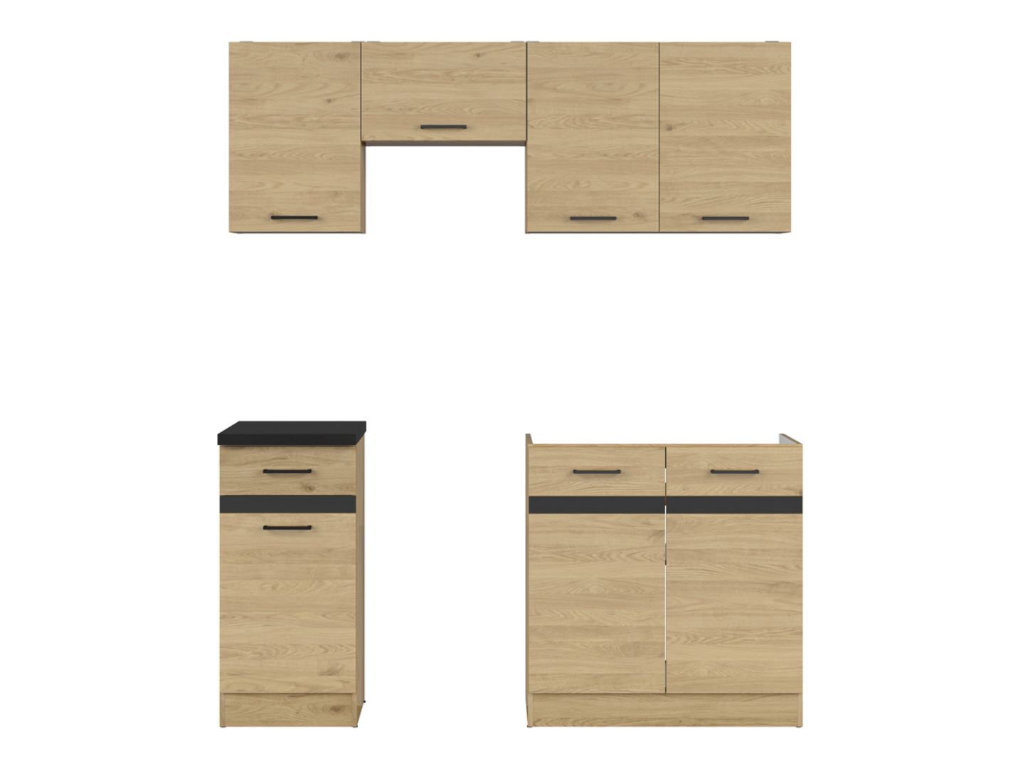 Virtuvės komplektas su stalviršiu 170 cm JUNONA LINE Bernstein ąžuolas/metalinis juodo aukso skalūnas