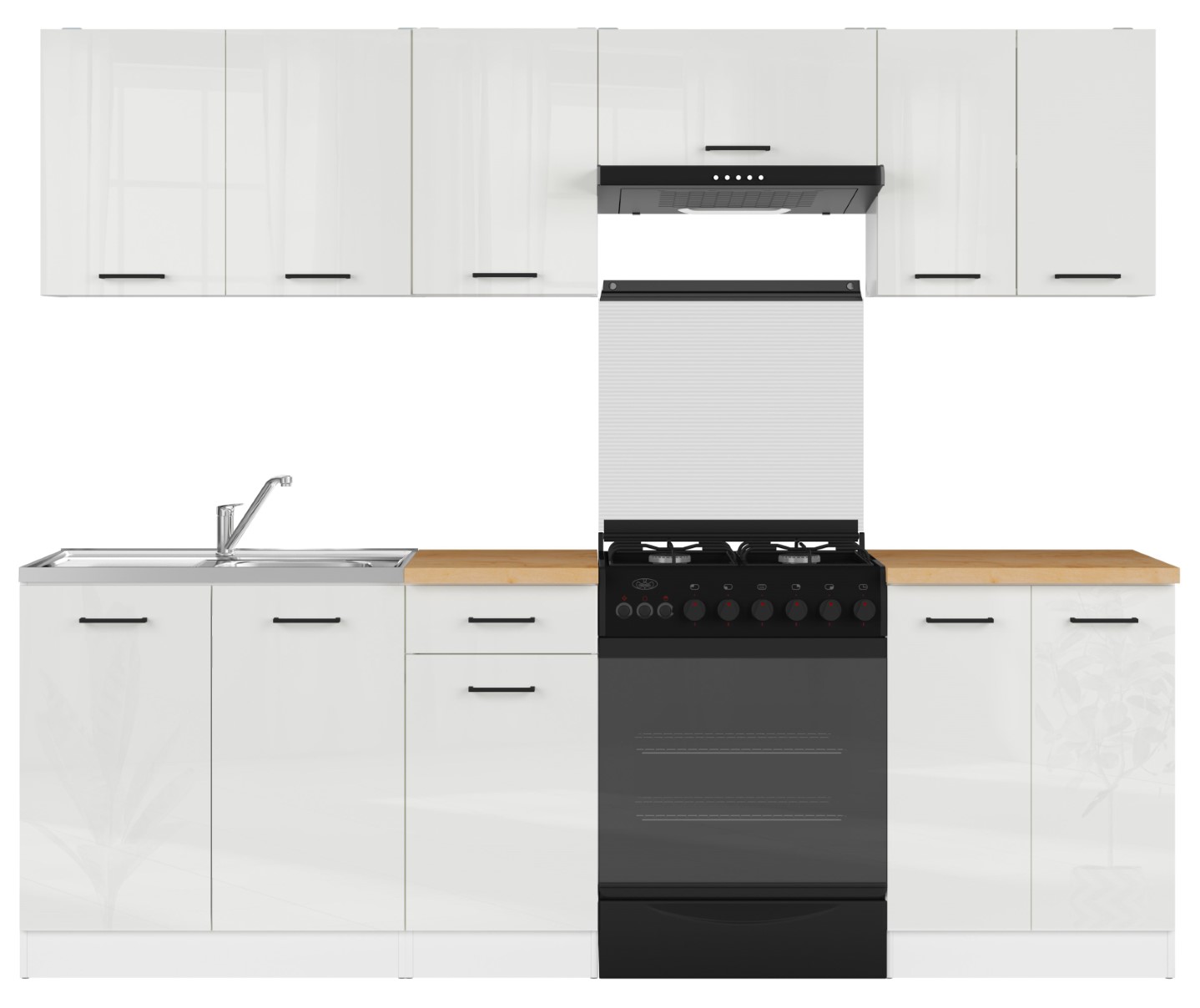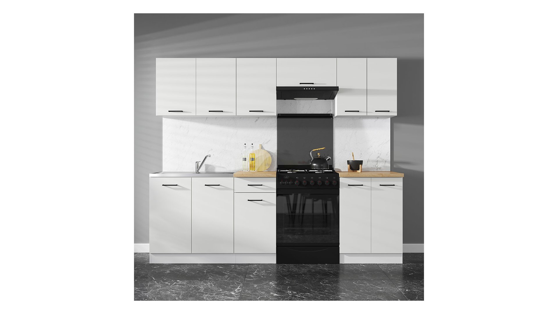 „Junona Line“ kolekcija garantuoja komfortą ir funkcionalumą jūsų virtuvėje. Su „Junona Line“ komplektais galite ergonomiškai sutvarkyti net ir nedidelę erdvę, o išplėsdami komplektą papildomomis spintelėmis, galite susikurti erdvę, pritaikytą jūsų poreikiams. Su „Junona Line 240“ virtuvės komplektu galite sutvarkyti savo virtuvę, atskirdami atskiras zonas: daiktų laikymo, ruošimo, maisto gaminimo ir plovimo. Erdviose viršutinėse spintelėse telpa indai, stiklinės, lėkštės, taip pat kavos ir arbatos pakuotės bei daugelis kitų produktų. Apatinėse spintelėse telpa puodai, puodai, virtuvės reikmenys ir šiukšliadėžė. 240 cm pločio virtuvės komplektas leidžia įmontuoti 60 cm pločio laisvai pastatomą viryklę arba, įsigijus orkaitės spintelę su stalviršiu, įrengti virtuvę orkaite ir įmontuojama kaitlente. Komplektą galima naudoti kaip atskirą įrenginį mažoje virtuvėlėje arba išplėsti papildomais tos pačios kolekcijos moduliais. „Junona Line“ komplektas pasižymi ne tik savo funkcionalumu, bet ir nesenstančia spalvų gama. Baltos spintelės ir kreidos baltumo blizgūs fasadai sukuria harmoningą harmoniją ir suteikia interjerui unikalų charakterį. Modernios juodos rankenėlės ir kontrastingas auksinis rankdarbių ąžuolo stalviršis užbaigia vaizdą. Papildykite „Junona Line“ komplektą kitais tos pačios kolekcijos elementais. Pasirinkite papildomus komplektus arba atskiras spinteles ir susikurkite modernią virtuvę, pritaikytą jūsų poreikiams. Viską, ko reikia jūsų virtuvei, rasite emkameble.pl.
