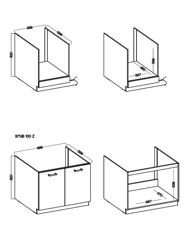 1x Šaldytuvo spintelė 60 cm / HSKK 60/190 Z / 3 x Priekinės dalys 1x Apatinė spintelė 40 cm / U 40Z PW II / 1x Priekinė dalis / 1x Stalčius 1x Apatinė spintelė orkaitei 60 cm / HUB 60 Z PW II 1x Apatinė spintelė Kriauklei 100 cm / SPUB 100 ZPW II / 2 x Priekinės dalys