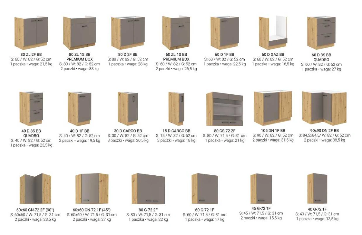Virtuvėje yra dešimtys spintelių, iš kurių galite susikurti savo komplektą.