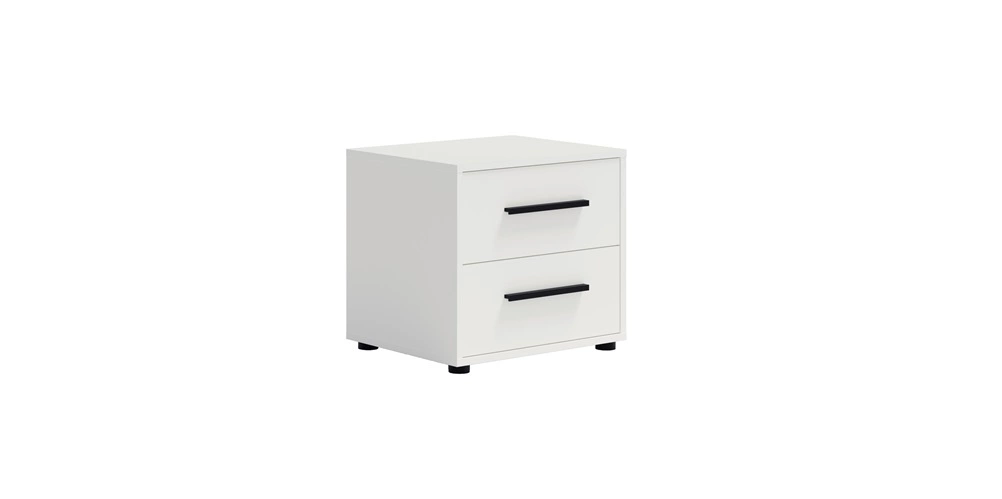 Baltas miegamojo baldų komplektas „Maxione“ yra paprastas, tačiau stilingas ir modernus baldas.