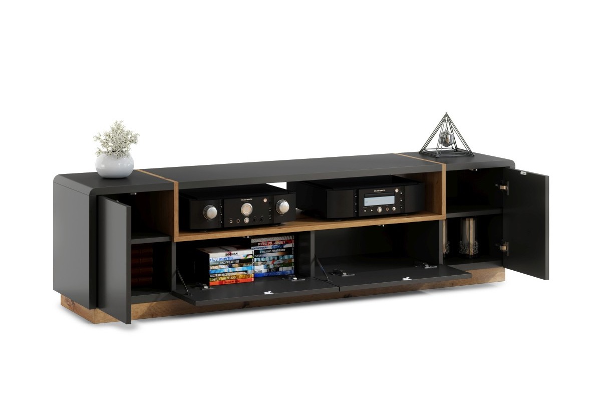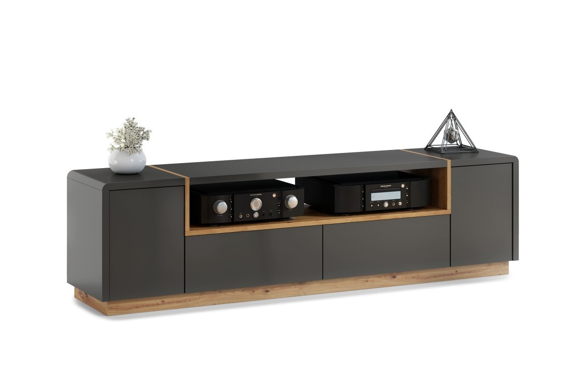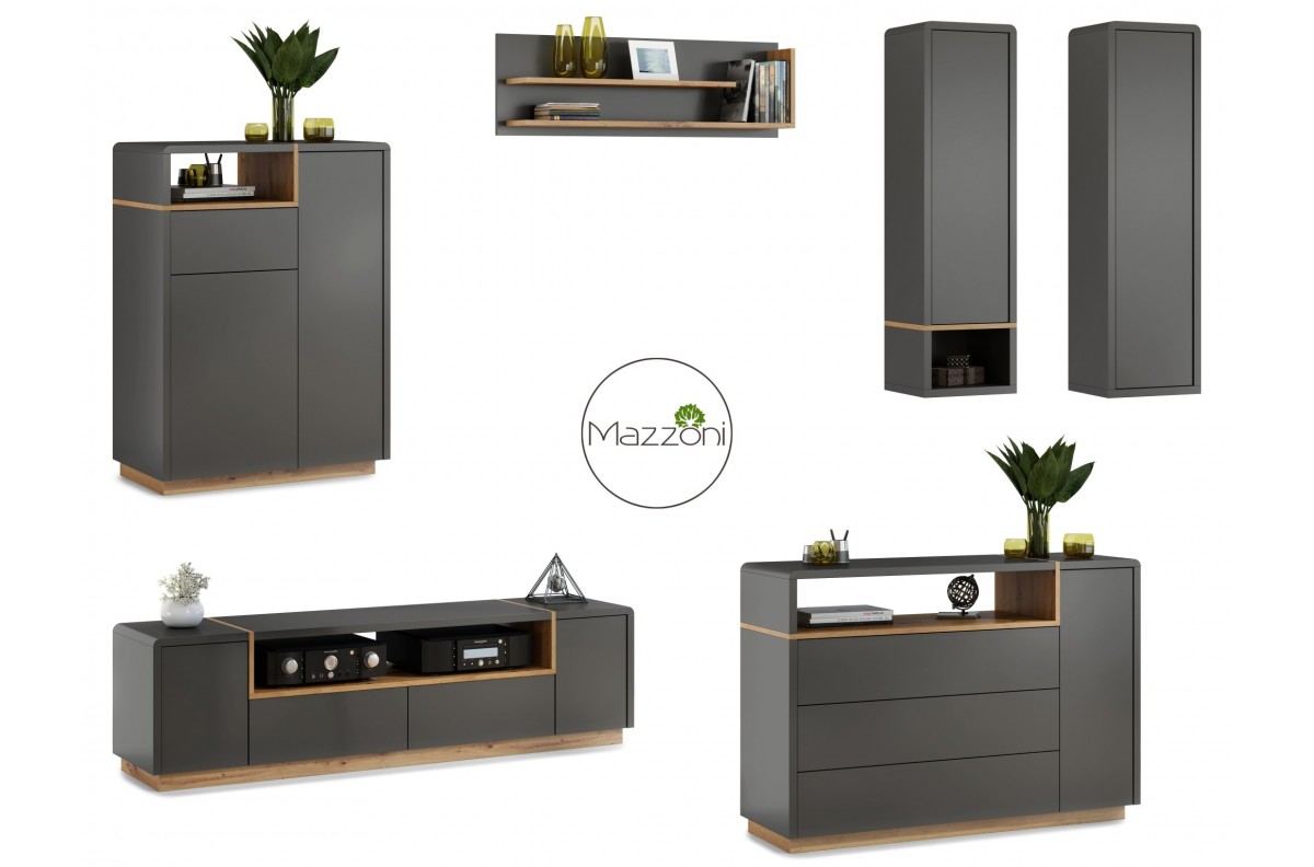 FOLK antracito (tamsiai pilkos) / artisan ąžuolo baldų komplektas – MODERNI SVETAINĖS SIENINĖ SPINTELĖ SU DIDELĖ TV SPINTELĖ