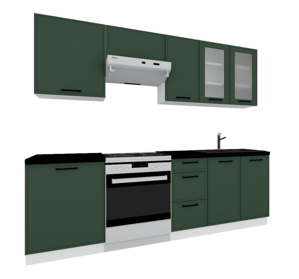 „Emily“ virtuvės komplektas, 180–240 cm virtuvė – komplekte yra šios spintelės: