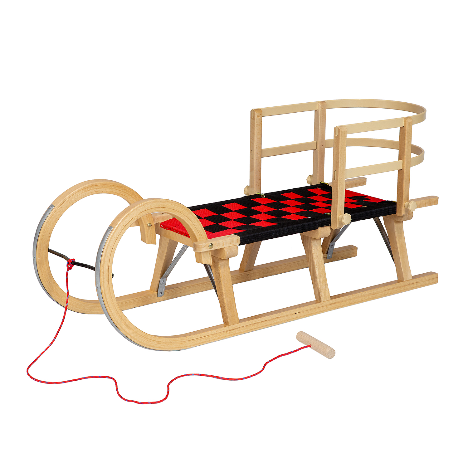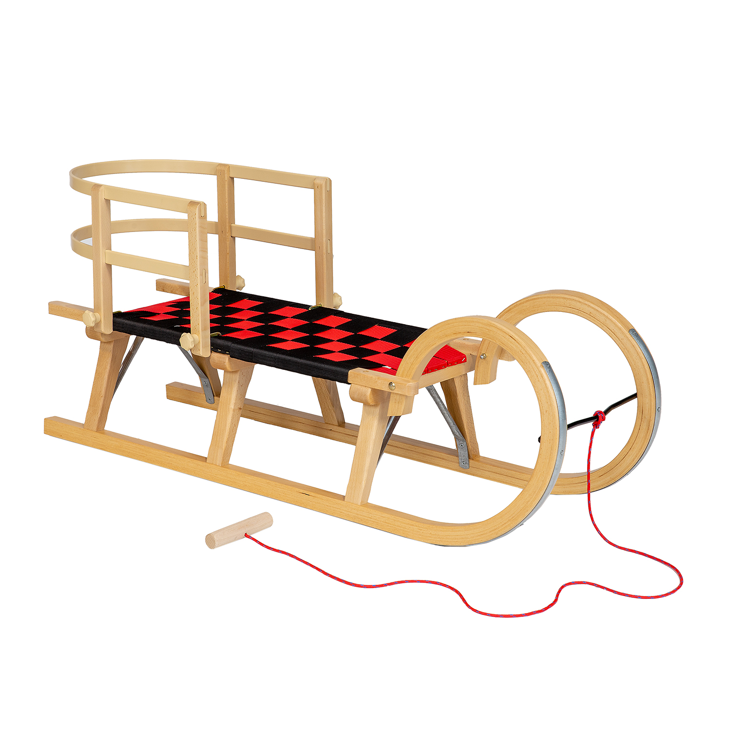 AD322/3M medinės rogės yra klasikinės “avinų ragų” rogės, pagamintos iš natūralios, tvirtos buko medienos. Tvirta konstrukcija užtikrina patvarumą ir stabilumą važiuojant sniegu. Sėdynė pagaminta iš patvaraus austinio tinklo su patraukliu raudonos ir juodos spalvos raštu, suteikiančiu rogėms unikalų stilių. AD322/3M rogės turi cinkuoto plieno bėgikus, užtikrinančius sklandų važiavimą ir išskirtinį atsparumą oro sąlygoms – bėgikai yra atsparūs rūdims ir labai patvarūs. Šios rogės puikiai tinka žiemos pasivaikščiojimams ir žaidimams, garantuojančios malonumą tiek vaikams, tiek suaugusiems.