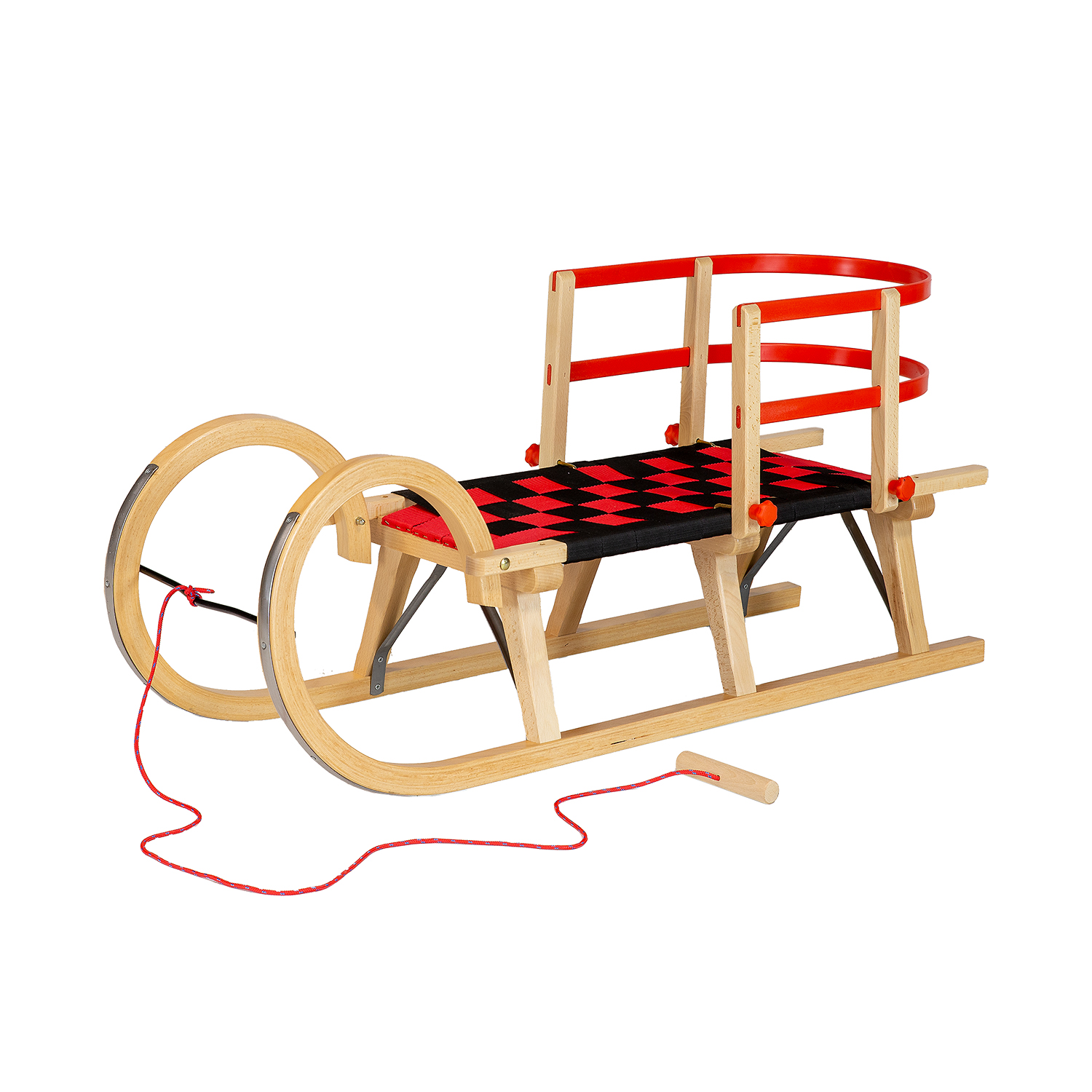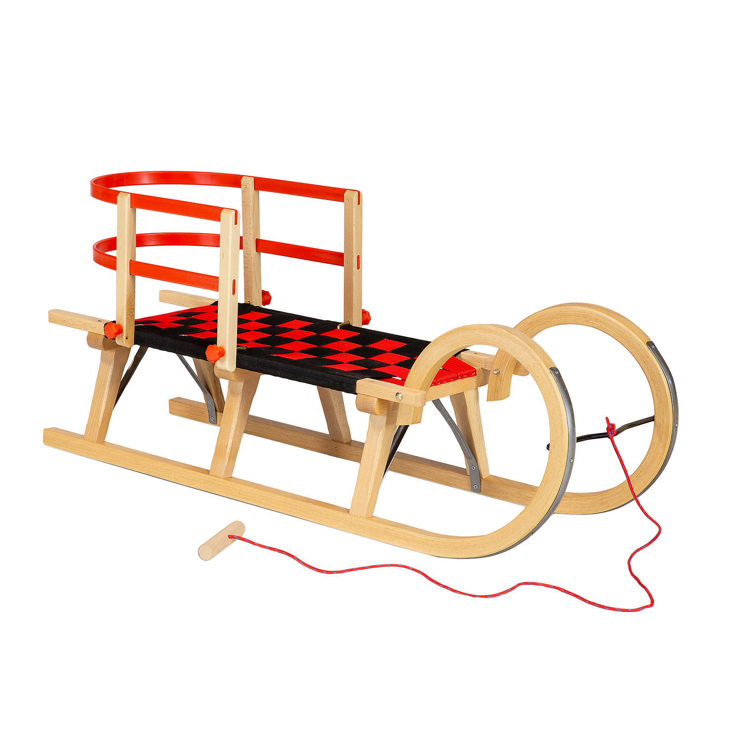 AD322 D110 medinių rogučių komplektas + AD303 raudonas atlošas + AD300 virvė