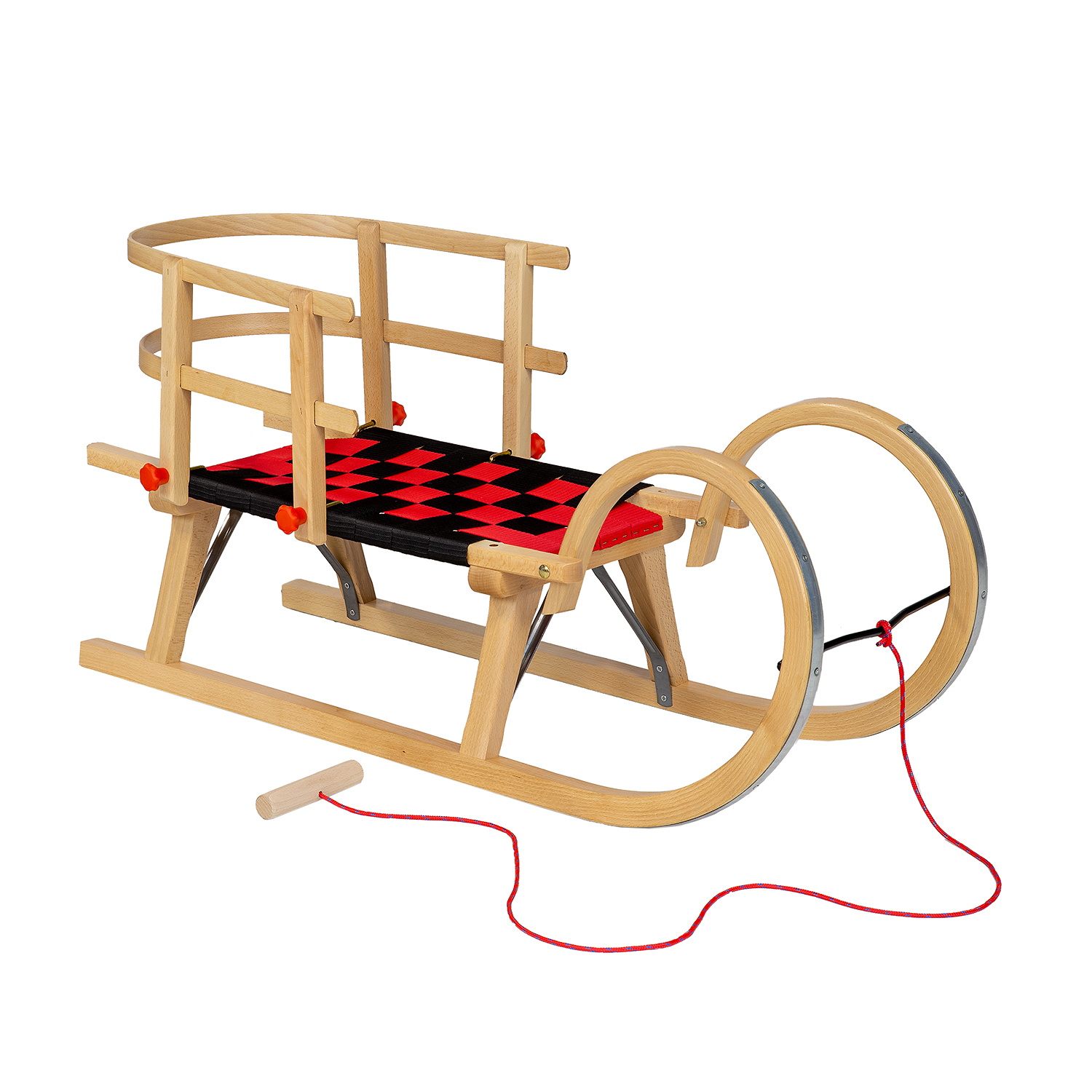 Medinės rogės AD322/2M yra klasikinės “avinų ragų” formos, pagamintos iš natūralios, tvirtos buko medienos. Tvirta konstrukcija užtikrina ilgaamžiškumą ir stabilumą važiuojant sniegu. Sėdynė pagaminta iš patvaraus austinio audinio su patraukliu raudonu ir juodu raštu, suteikiančiu rogėms unikalų stilių.