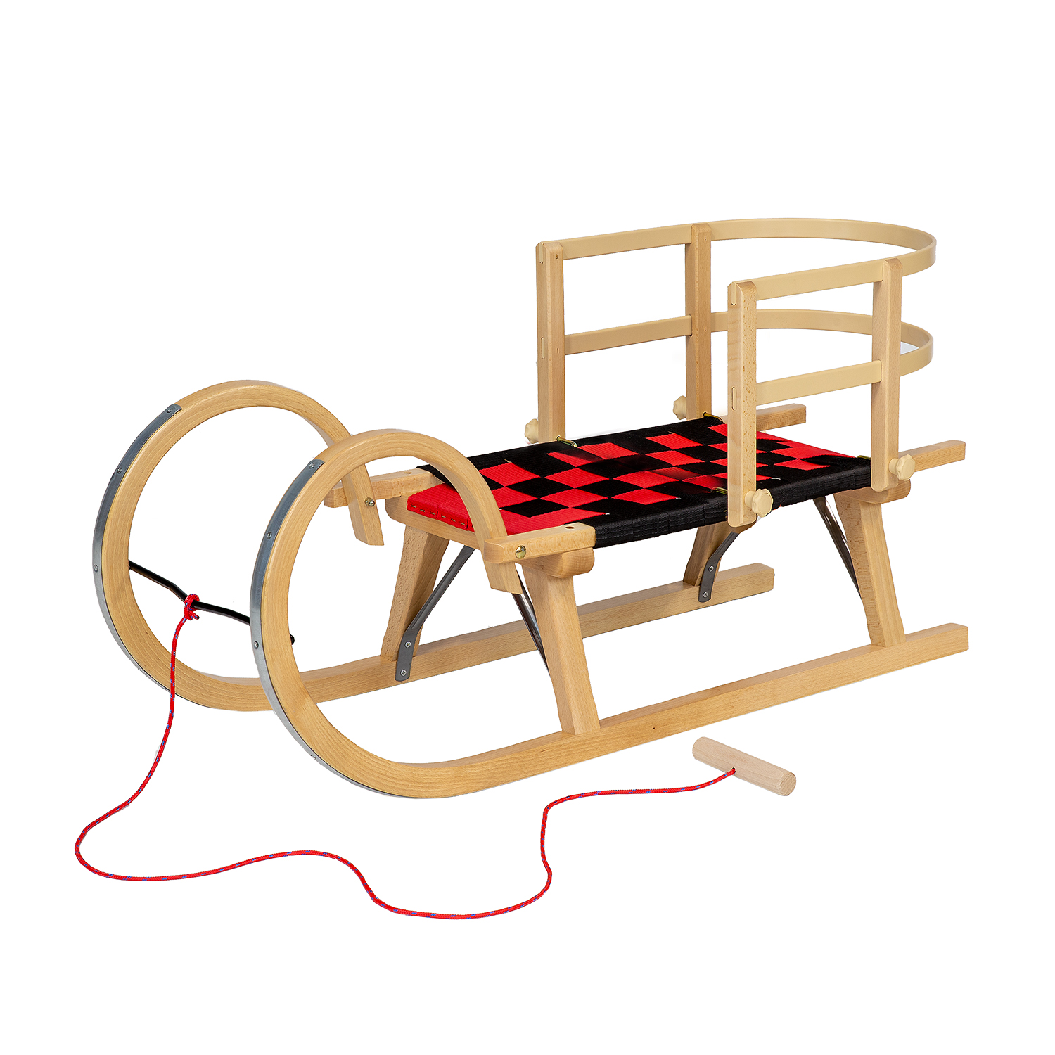Medinės rogės AD322/2M yra klasikinės “avinų ragų” formos, pagamintos iš natūralios, tvirtos buko medienos. Tvirta konstrukcija užtikrina ilgaamžiškumą ir stabilumą važiuojant sniegu. Sėdynė pagaminta iš patvaraus austinio audinio su patraukliu raudonu ir juodu raštu, suteikiančiu rogėms unikalų stilių.