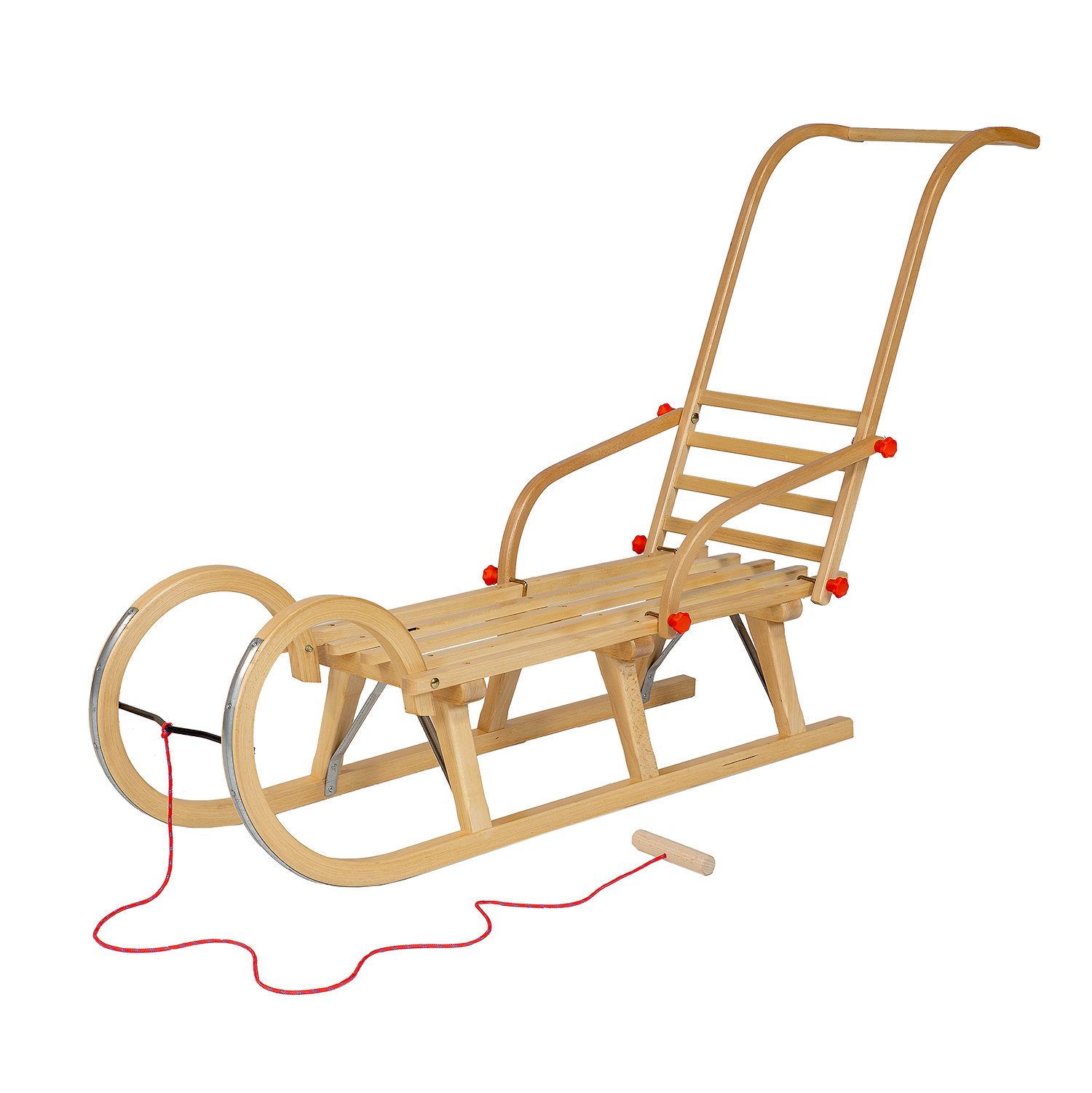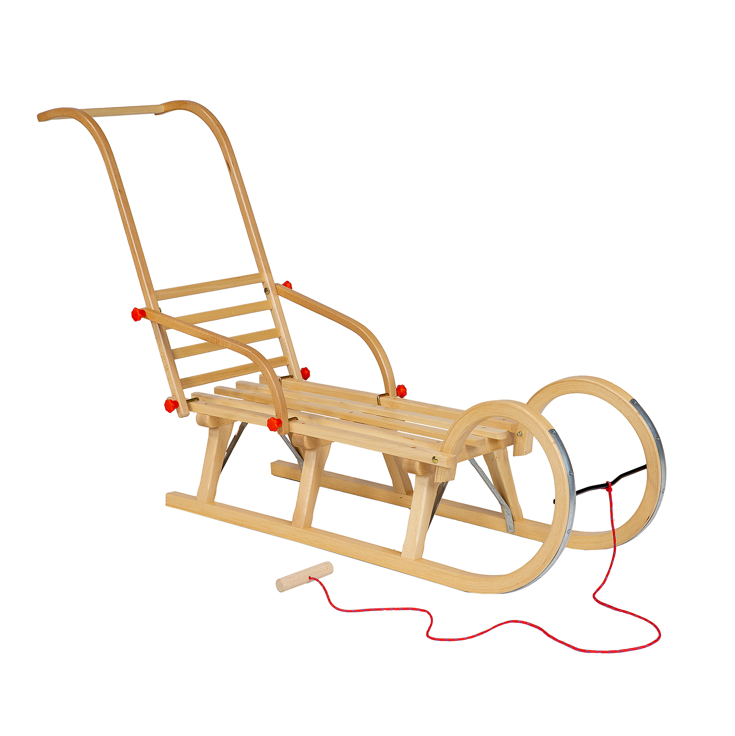 Medinių rogučių komplektas AD323 D110 + AD310 atlošo stūmiklis + AD300 virvelė iš natūralaus buko medienos