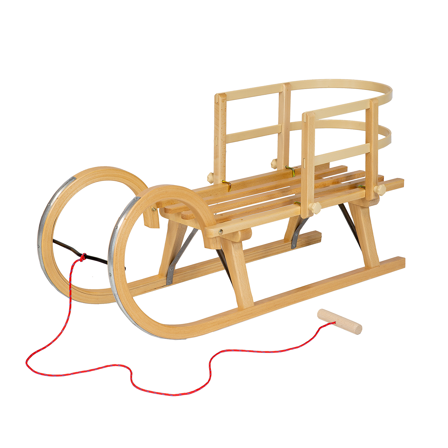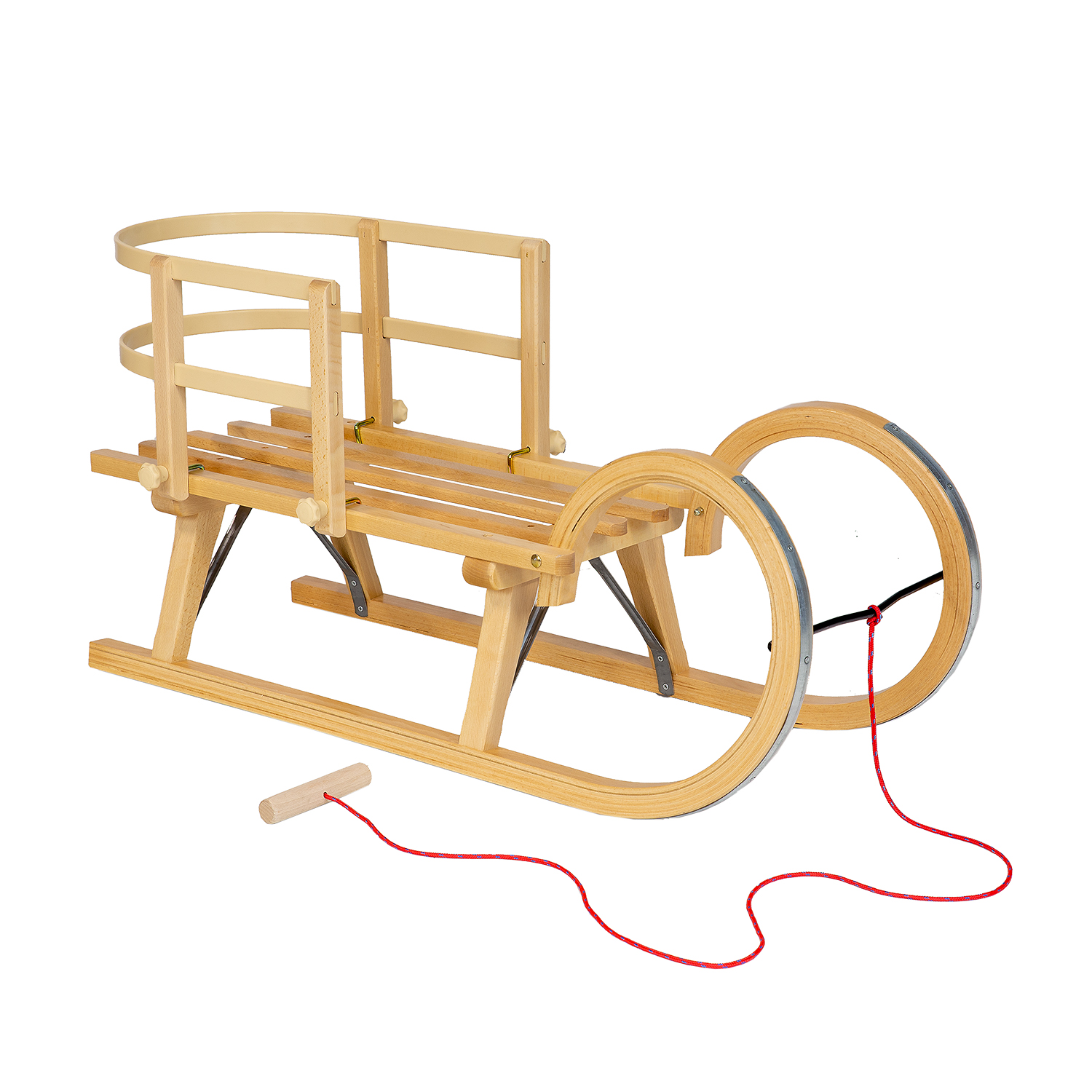Medinių rogučių komplektas AD323 D95 + AD303 smėlio spalvos atlošas + AD300 natūralaus buko virvelė