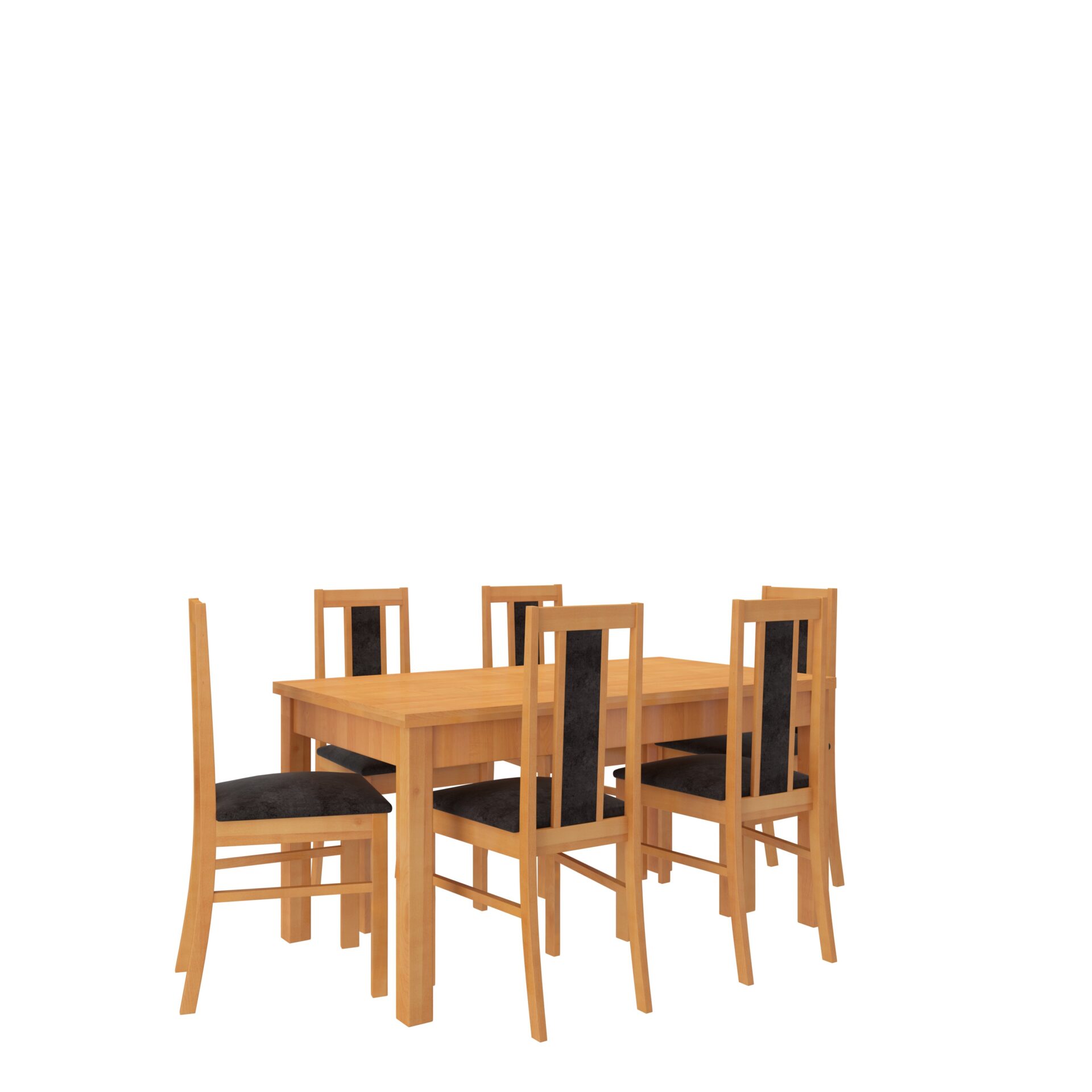 RODOS 52 komplektas – puikus sprendimas klasikiniam valgomajam. Komplektą sudaro tvirtas stalas ir šešios patogios kėdės. Prie paprasto stalo patogiai telpa šeši žmonės. Baldai yra elegantiški ir patogūs. Išsirinkite norimą spalvų ir audinių kolekciją ir susikurkite savo svajonių komplektą.