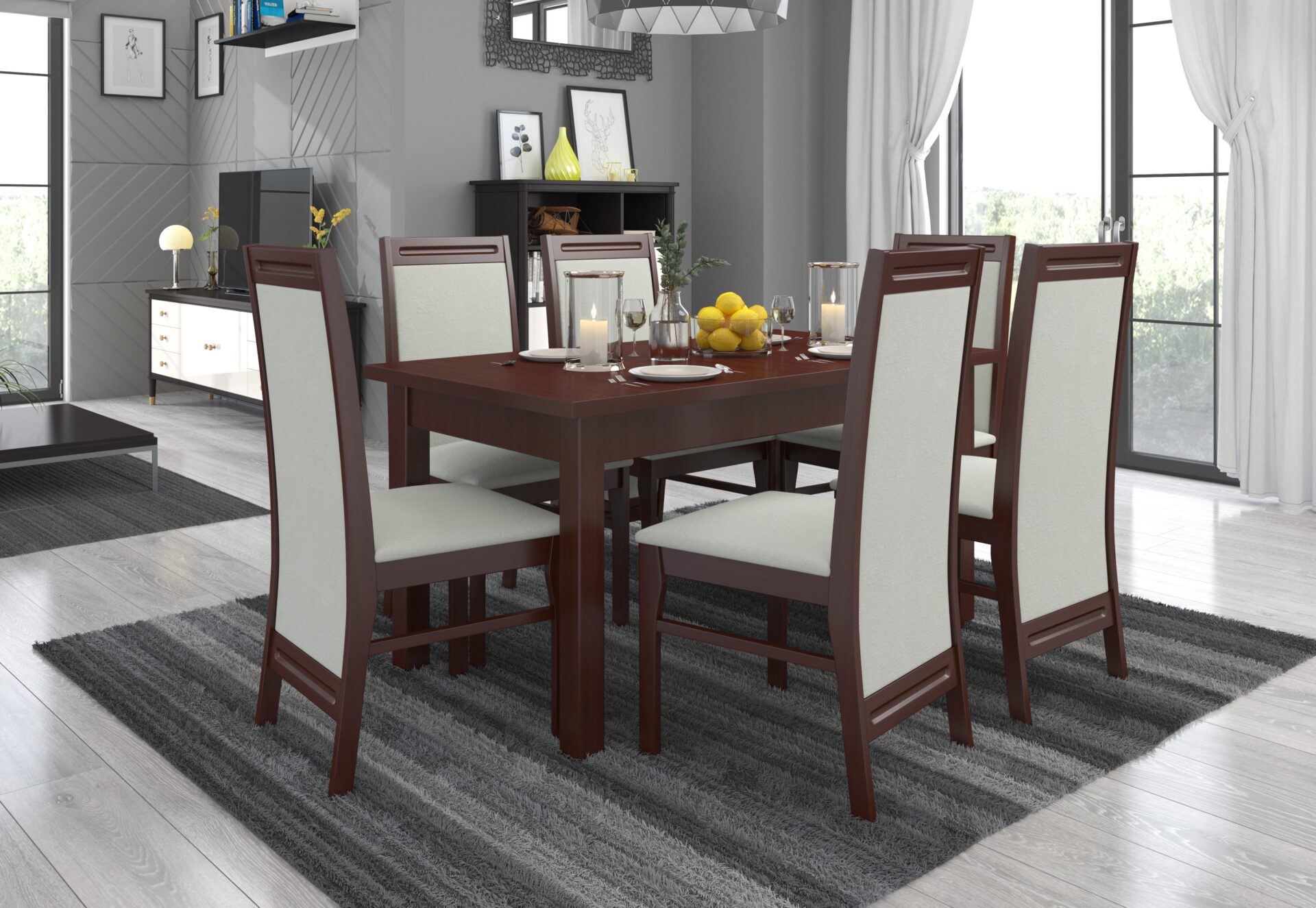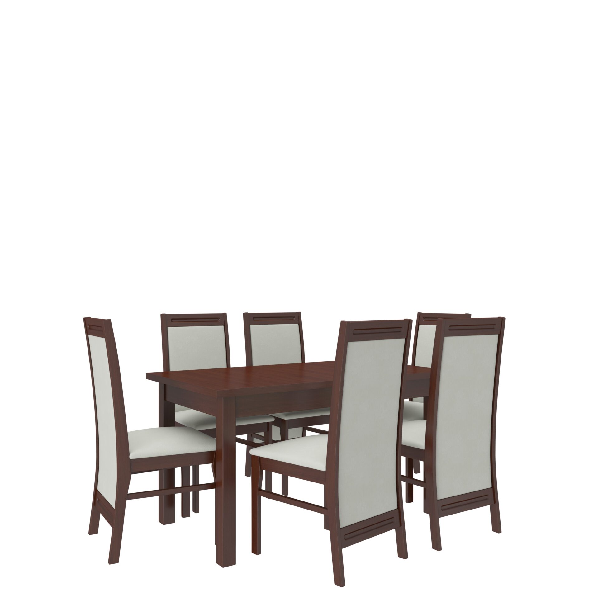 RODOS 7 dalių baldų komplektas – puikus sprendimas klasikiniam valgomajam. Komplektą sudaro tvirtas stalas ir šešios patogios kėdės. Prie paprasto stalo patogiai telpa šeši žmonės. Baldai yra elegantiški ir patogūs. Išsirinkite norimą spalvų ir audinių kolekciją ir susikurkite savo svajonių baldų komplektą.