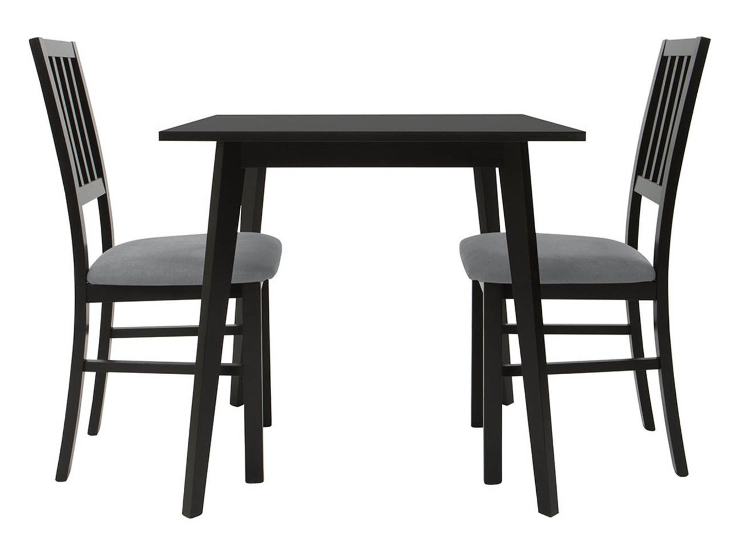 Juodo stalo ir dviejų kėdžių komplektas „Asti“ – puikus pasirinkimas valgomajam ar virtuvei! Baldų komplektas „Asti“, kurį sudaro juodas stalas ir dvi juodos kėdės, yra puikus pasirinkimas valgomajam ar virtuvei, ypač jei erdvė ribota. Paprasta ir taisyklinga konstrukcija, kompaktiški matmenys ir modernus dizainas leidžia lengvai sukurti patogią valgomojo erdvę net ir mažose erdvėse.