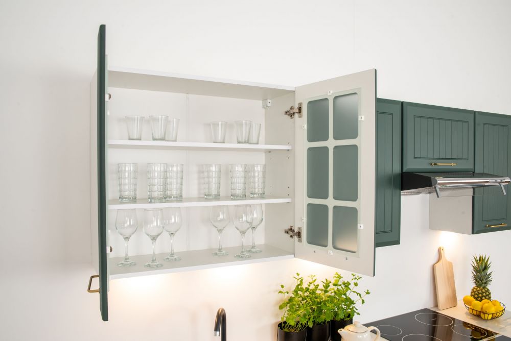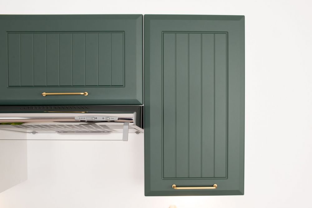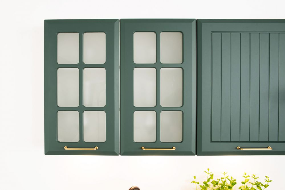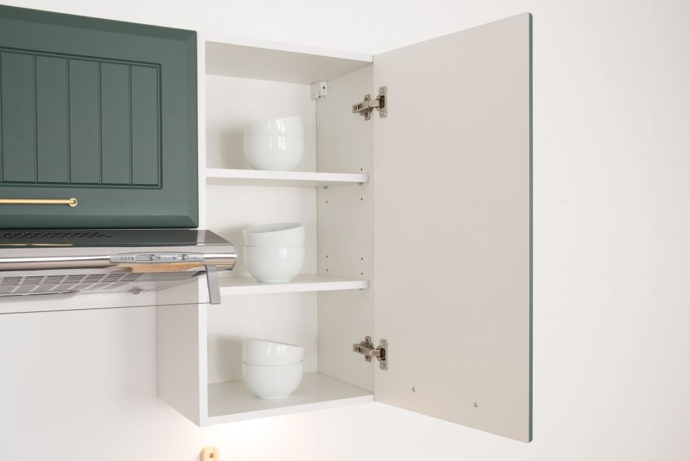 Viršutinės spintelės priekinės dalies spalva: BALTA MATINĖ / ŠVIESIAI PILKA MATINĖ / ŽALIA MATINĖ