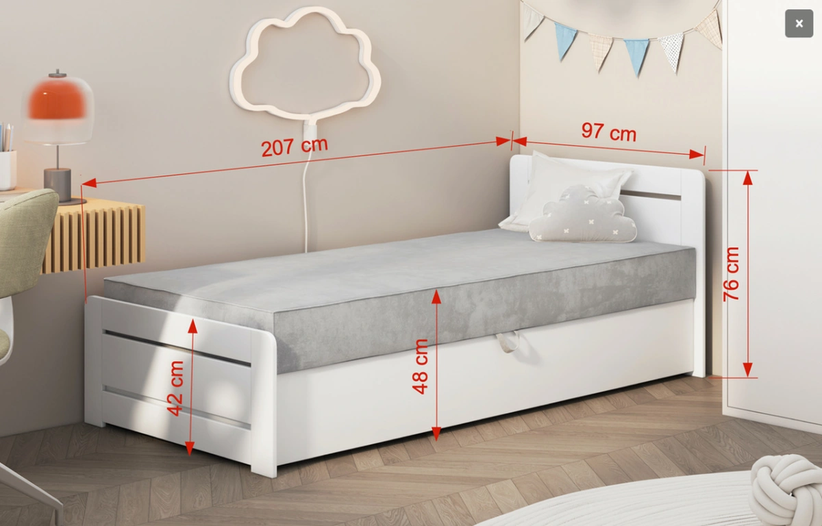 ZOE lova su daiktadėže ir minkštu čiužiniu 90×200 cm