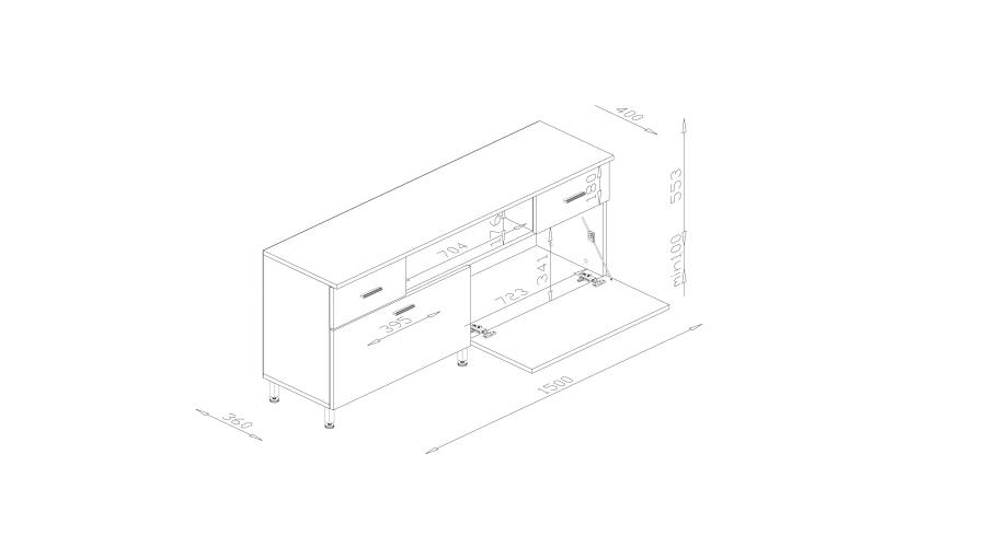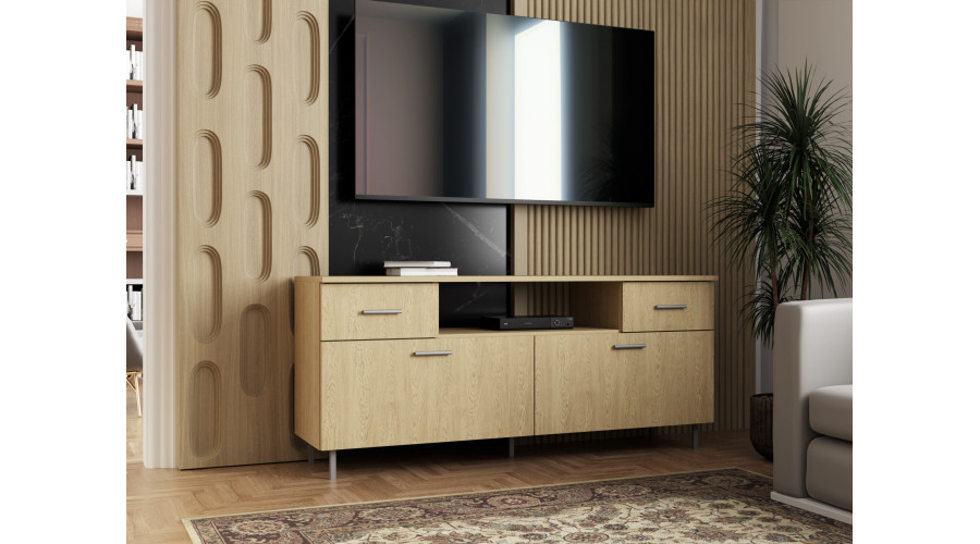 Šis 150 cm pločio televizoriaus staliukas – puikus sprendimas tiems, kurie vertina modernų dizainą ir praktišką požiūrį į daiktų laikymą. Minimalistinė forma ir kompaktiškas dydis puikiai tinka svetainei, miegamajam ar jaunimo kambariui. Jis derina estetiką ir funkcionalumą, suteikdamas patogią vietą televizoriaus įrangai ir kasdieniams daiktams.