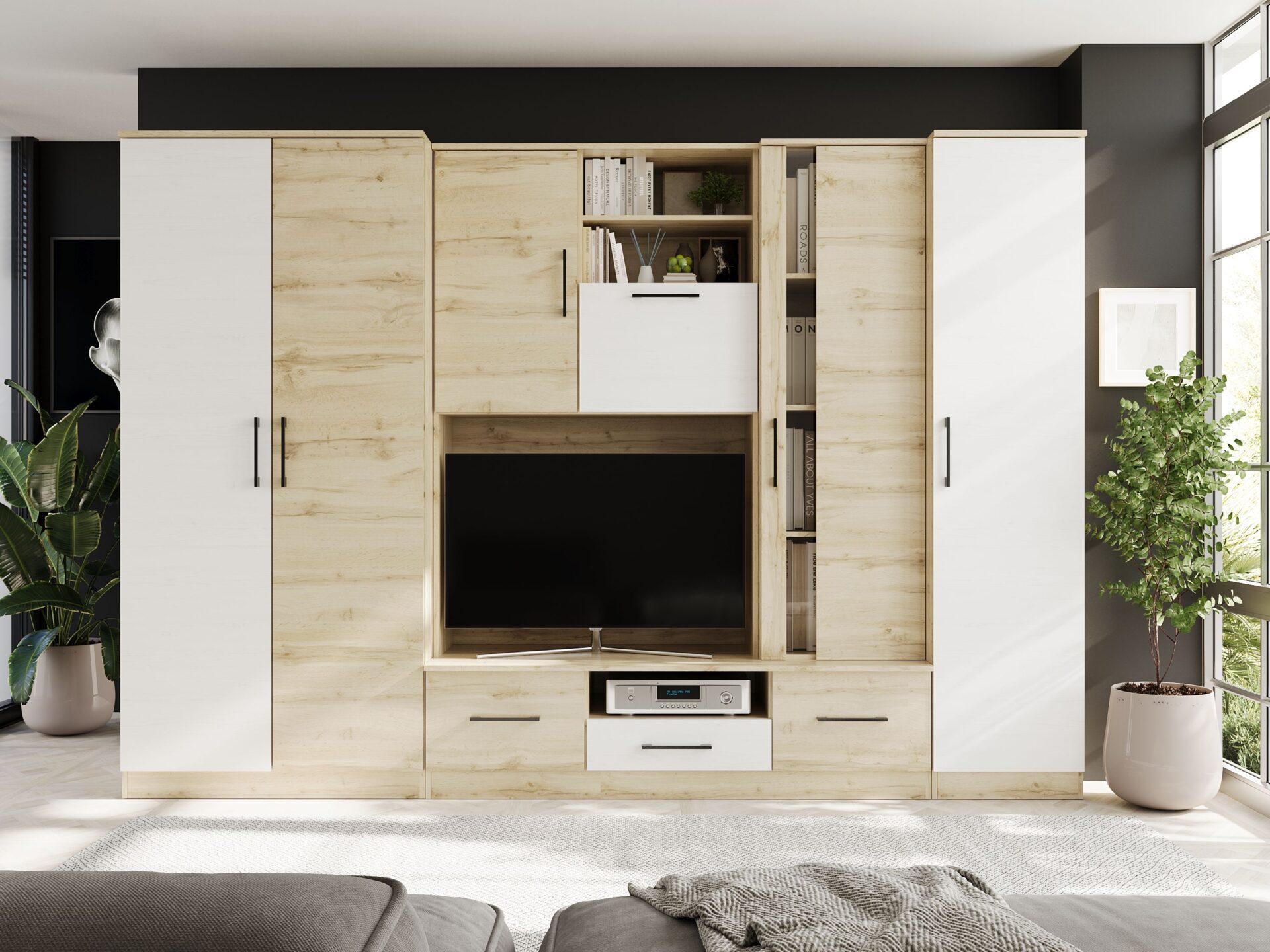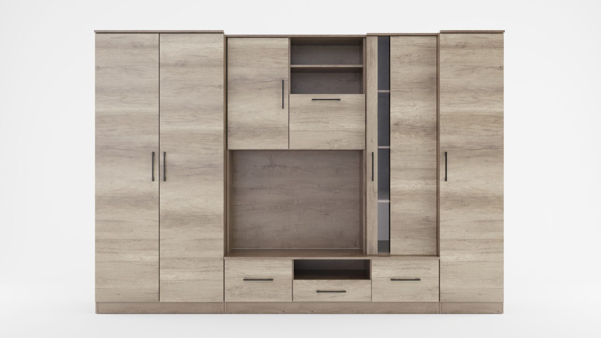 ALEX B komplektas – puikus pasirinkimas tiems, kurie ieško modernumo visame kame. Paprastas dizainas ir lengva priežiūra patiks jo gerbėjams. Sieninė spintelė turi daug praktiškų daiktadėžių, kurios padės išlaikyti tvarką, o atvirų stiklinių lentynų dėka galite pabrėžti savo unikalų stilių stilingais aksesuarais. Baldai yra erdvūs ir siūlomi įvairių spalvų. Matmenys: